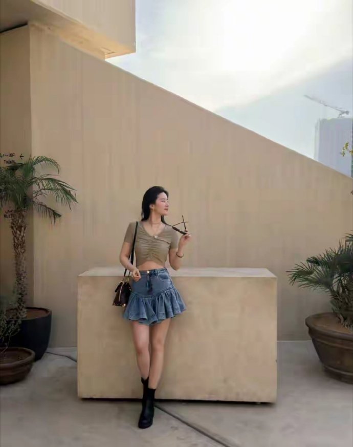 刘亦菲晒阿布扎比素颜照,好清爽的一身!上衣仅200元,真接地气
