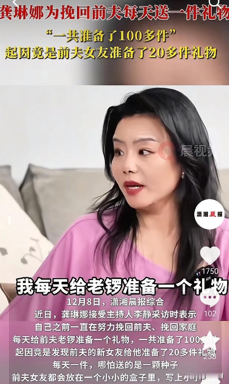 龚琳娜后悔离婚了,想挽回和老锣的婚姻,可惜被拒绝。由于疫情的原因,两人异国分居,在第20个年头里,老锣坦然告诉龚琳娜,他在德国有了“新女朋友”,要求离婚。 龚琳娜分享事业成就时,老锣的回应变得冷淡;老锣则抱怨龚琳娜“不关心他的生活”。德国人天生的浪漫追求,而龚琳娜典型的中国文艺人,两个人向往的世界已经变味了。 人最大的问题,就是被分手以后,就从自己身上找原因,不断的自责后悔内耗,其实就是那个人变心了就这么简单,她没有做错任何事情。 可是近年来龚琳娜每天为他准备一份小礼物,已经送出100份。她只想让自己的爱有个安身之地,当她知道老锣的现女友原来也在做着同样的事情,她还是自责到,从来不知道爱人之间还可以这样。 德国人的浪漫也许本土的他们才能体会,有些不合适的人也许是双方的解脱,一个向往舞台王者,一个向往平淡的田园生活,好的开始并不等于会有一个完美的结局。 希望龚琳娜也明白,不是她不够优秀,不是她不如老锣的现任,而仅仅是一个男人变了心而已。 (图片来自网络视频)