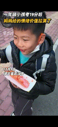 一年级小孩考试后,妈妈给的情绪价值拉满了!湖北武汉,一位妈妈接儿子放学后,问道:“今天考试成绩怎么样?都不会?零分?”小孩一边吃烤肠一边回答道:“考了19分。” 一般听到这话的家长都会生气,毕竟19分实在是有些低,没想到这位家长听到自己的儿子考了19分后,反倒是非常开心,还说“这么高,都考了19分呢。”孩子听到这话后都有点懵了。 后来在采访中孩子妈妈说,是因为在同年级中孩子年龄属于偏小的,甚至原来学校测试还交过白卷,所以这次考19分,觉得还是很有进步的。就希望孩子每天去学校开开心心就可以了。 不得不说这位家长对孩子真是快乐的鼓励式教育了,能接受孩子一点一点进步,有这样的家长,应该很幸福吧。