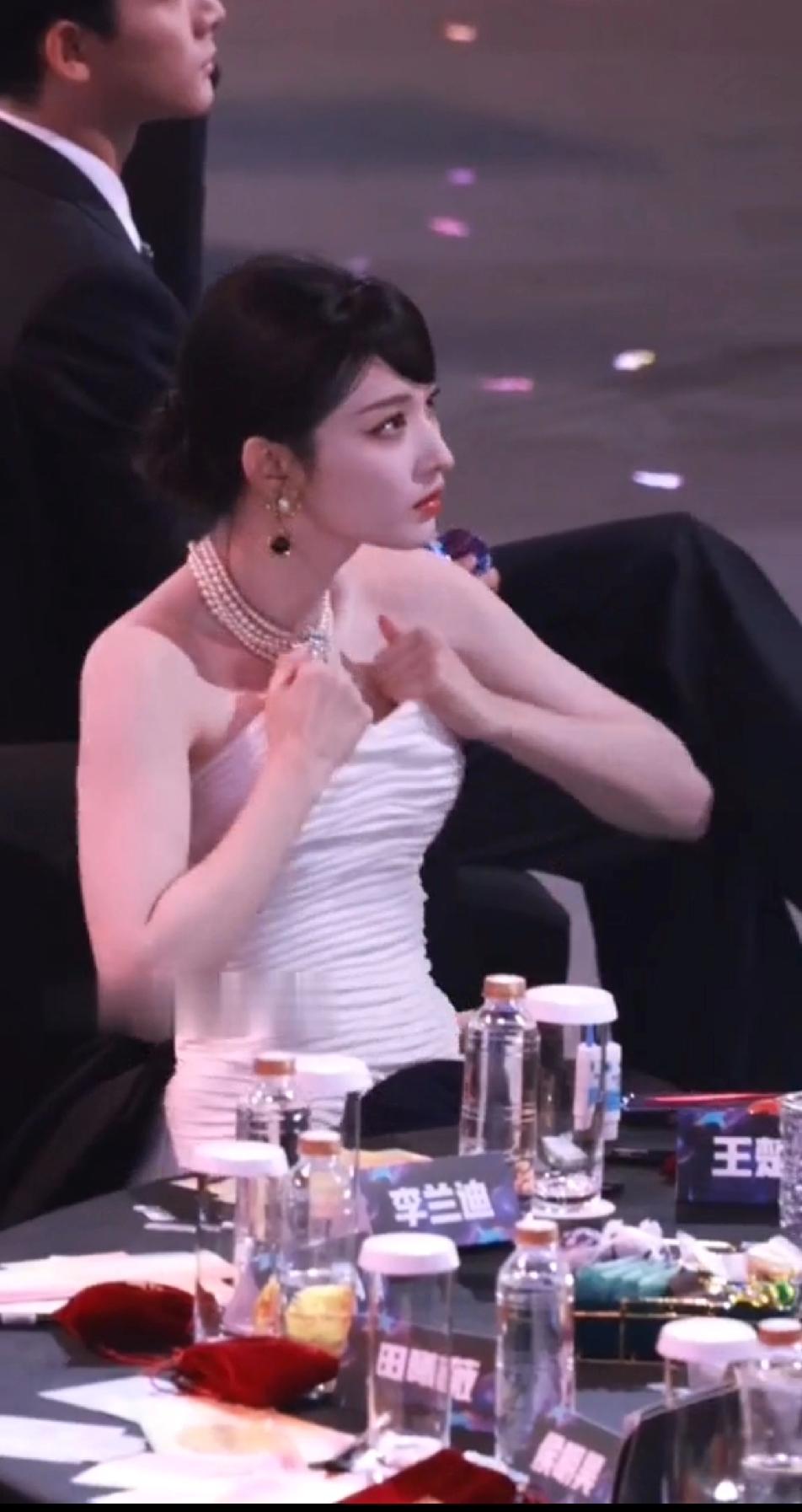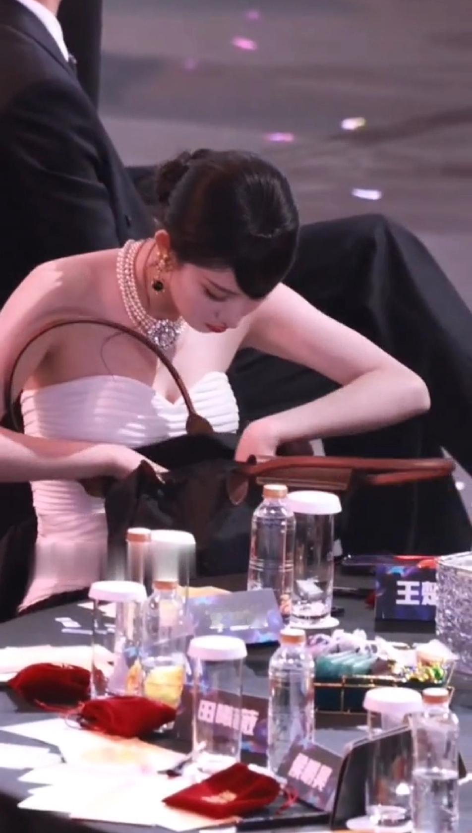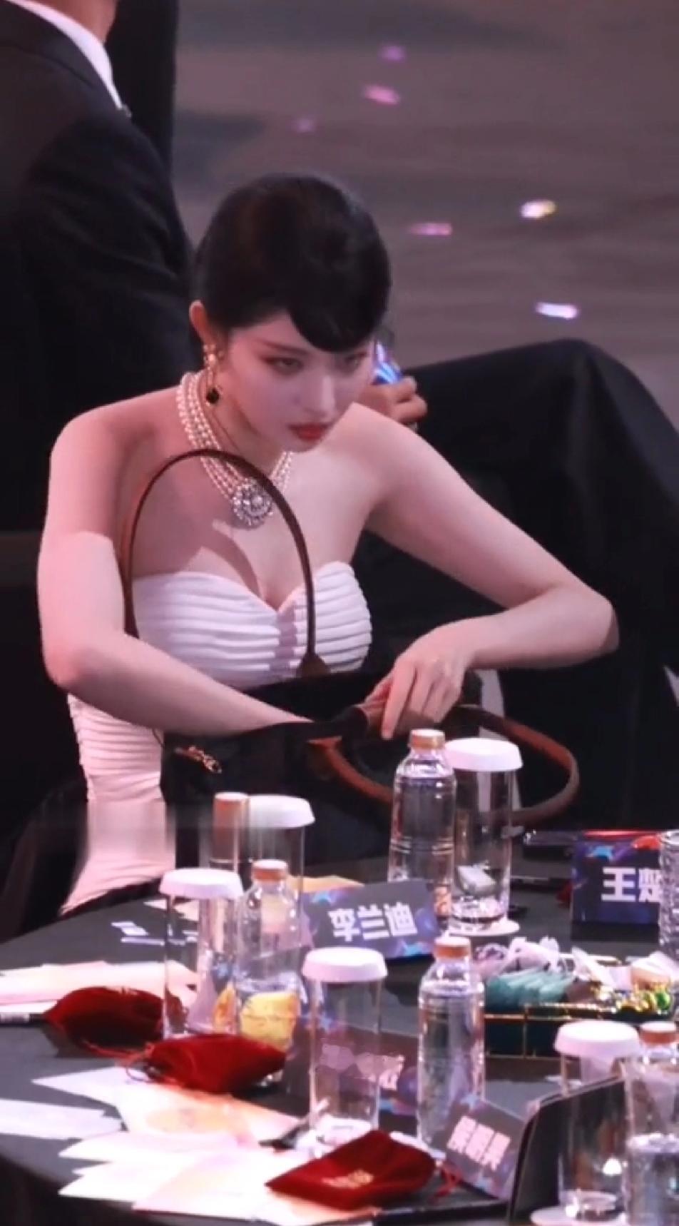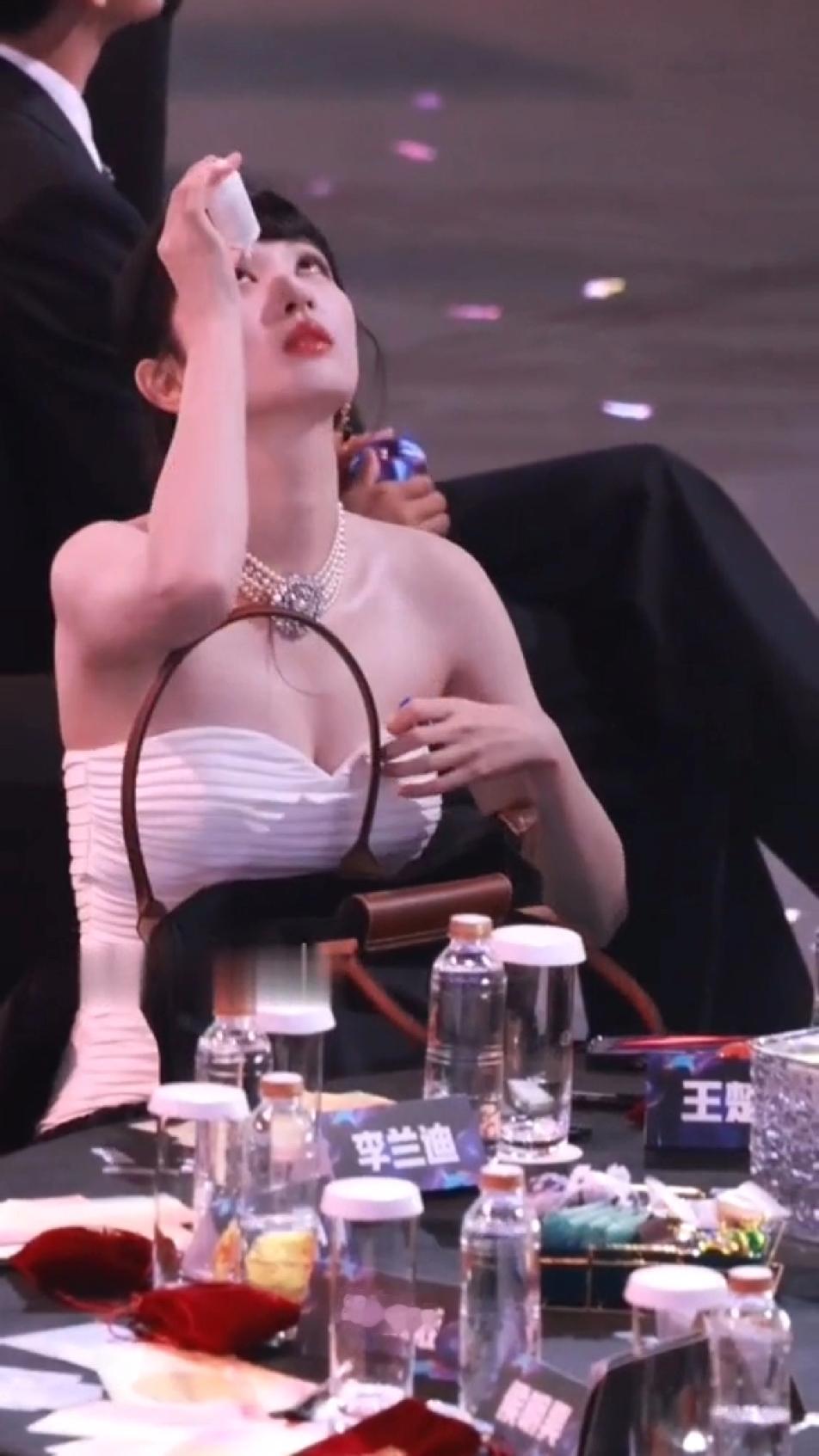 本来以为珠光宝气的王楚然会优雅的打开自己的小包包,随手拿出自己摆放的井然有序的口红或者腮红,斯斯文文的补妆,没想到看到的是一个大大咧咧的妹子着急忙慌的在一个硕大的包里翻来翻去找眼药水,更没想到的是找完东西后,王楚然还送福利,出其不意的拽着自己胸前的礼服可劲的往上拽,拽完了后,这姐妹还冲着同桌的小伙伴傻乐,王楚然怎么那么虎?跟想象的完全不一样…王楚然