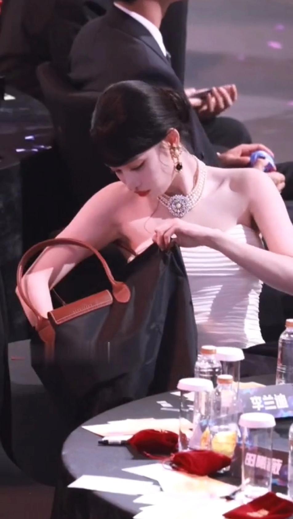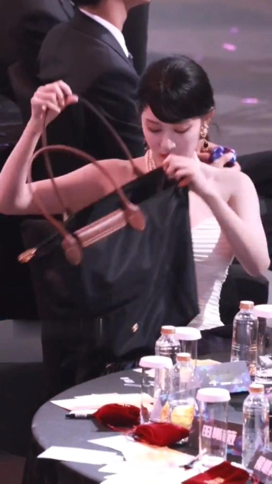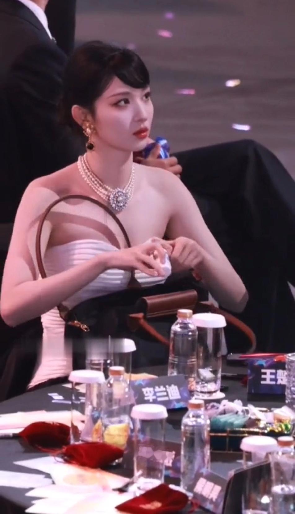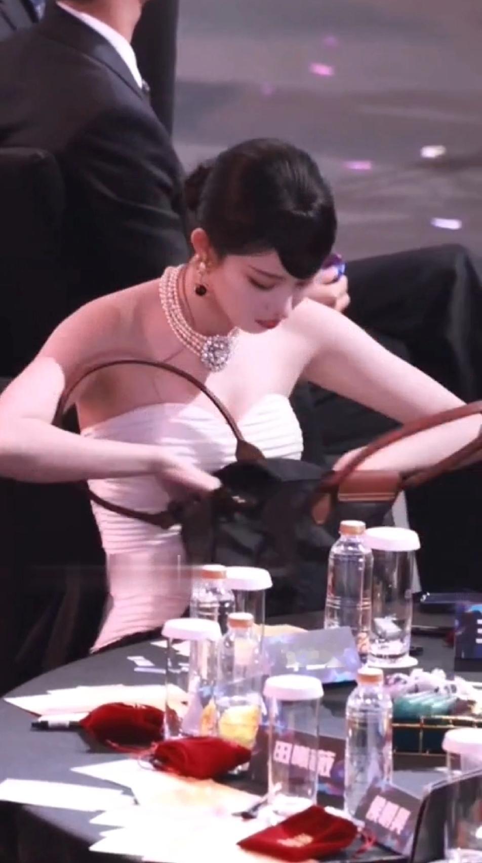 本来以为珠光宝气的王楚然会优雅的打开自己的小包包,随手拿出自己摆放的井然有序的口红或者腮红,斯斯文文的补妆,没想到看到的是一个大大咧咧的妹子着急忙慌的在一个硕大的包里翻来翻去找眼药水,更没想到的是找完东西后,王楚然还送福利,出其不意的拽着自己胸前的礼服可劲的往上拽,拽完了后,这姐妹还冲着同桌的小伙伴傻乐,王楚然怎么那么虎?跟想象的完全不一样…王楚然