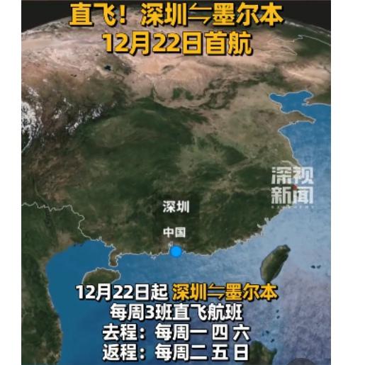 深圳直飞墨尔本首航定档12月22日!机票已开抢,性价比直接拉满,跨洲出行党狂喜!这也是深航首条澳洲航线,以后往返两地不用再绕路中转,省时又省心。 航线每周飞三班超适配需求,去程每周一、四、六深夜23点55分从深圳宝安起飞,次日下午1点就能到墨尔本,回程每周二、五、日当地深夜起飞,隔天清晨5点抵深,全程7479公里仅需10小时5分,像架起空中快速桥梁,长途奔波感大幅减少。执飞用的是空客A330宽体客机,带三舱布局和高清娱乐系统,坐飞机也能舒舒服服不无聊。 开航福利超给力,单程机票2200元起,往返2390元起(不含税),即日起至12月27日还能在深航官方平台领大额优惠券,覆盖多时段航班,入手超划算。经深圳中转的旅客,持6-36小时联程票还能享免费中转酒店,顺带拿“红胖子”观光巴士票打卡深圳,出行兼顾便捷与趣味。不管是旅游、出差还是探亲,这条直飞航线都超实用,你打算趁首航福利安排澳洲之行吗?