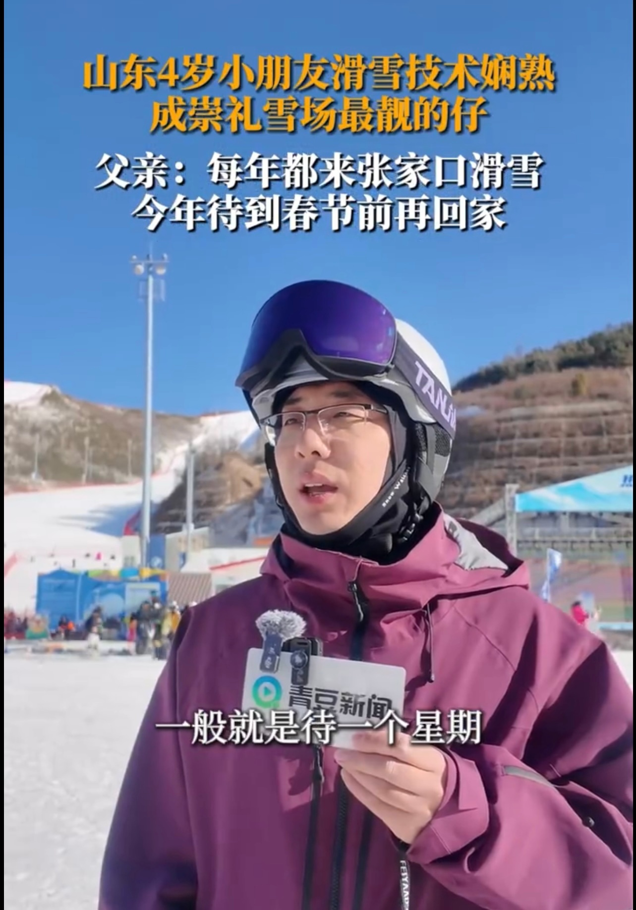 4岁小孩哥河北滑雪炫技又萌又飒 河北冰雪热的可爱打开方式!山东4岁宸宸一身粉红兔子装,揣胡萝卜在崇礼雪道飞驰,滑行动作老练。两岁多接触滑雪的他雪龄近两载,爸爸追不上的实力,让冬奥小城雪场更具吸引力。戏冰雪的显眼包都来河北了