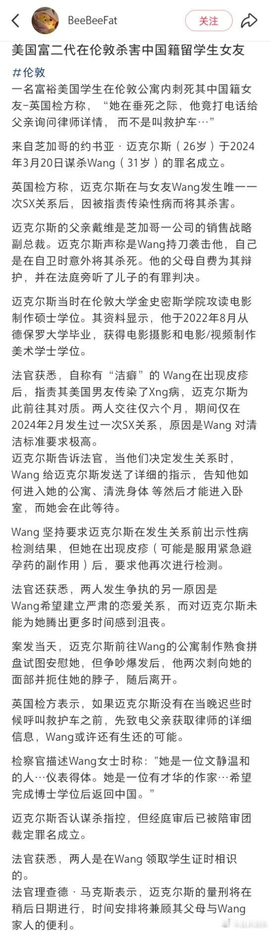 31岁中国女留学生遭美国男友杀害出去留学就安安心心留学,别有什么太多的人际关系。人际关系越复杂,越容易出现意外情况。在国外,不是在国内,出了什么情况,家人都不好找去。想让这个美国的杀人凶手偿命,那基本也是不可能的。