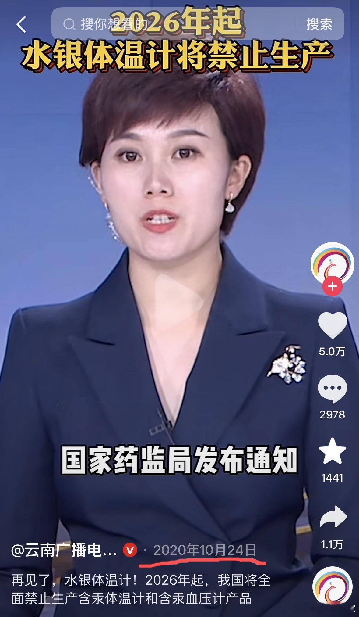 最让人感叹的是,这个消息2020年就已经公布了,当时还有很多人说2026年还早,现在转眼就到了水银体温计血压计明年起禁产