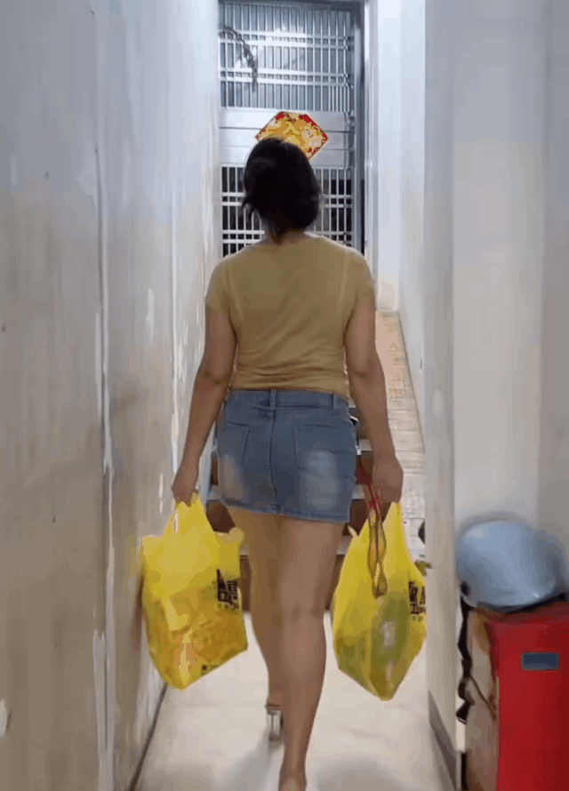 大嫂去超市买菜回来了,晚上有好吃的了!