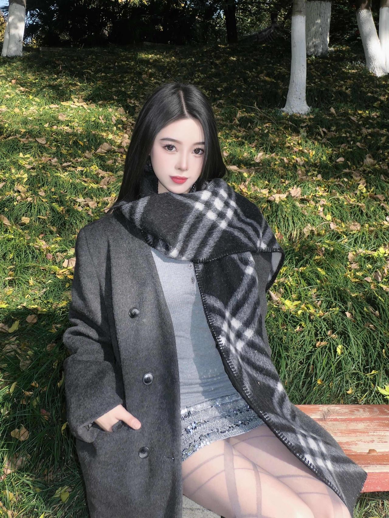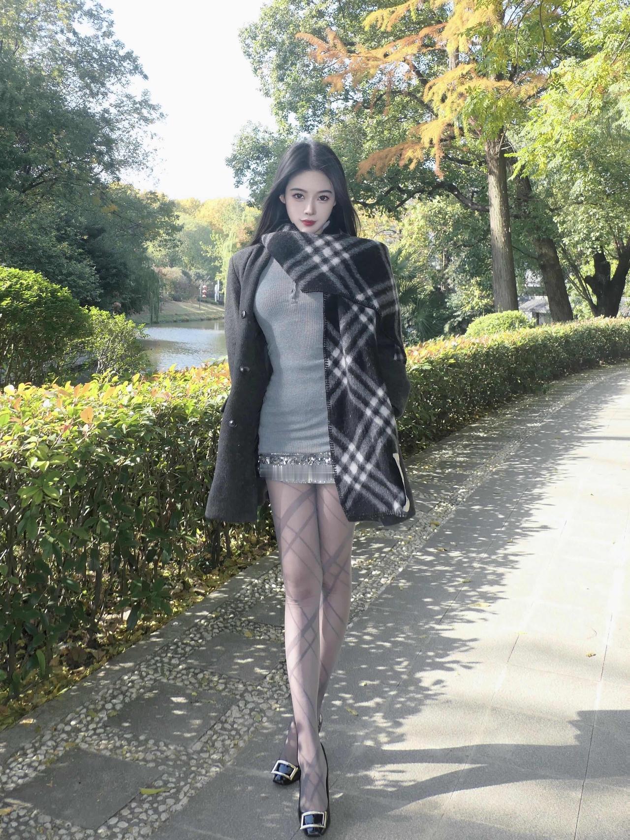 冬日格雷系 阳光很好的下午~散布拍拍[心] 色系:灰黑 搭配:深灰色羽绒外套➕灰色内搭➕灰色菱格袜。大面积灰小面积黑,围巾菱格呼应下子袜子,整体色彩元素和谐看看气质女神的穿着搭配吧御姐 灰色系穿搭 御姐穿搭