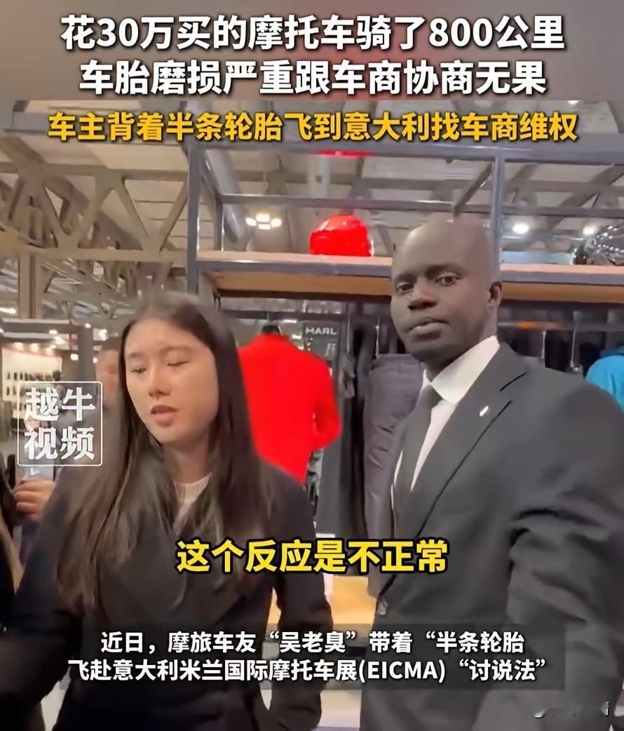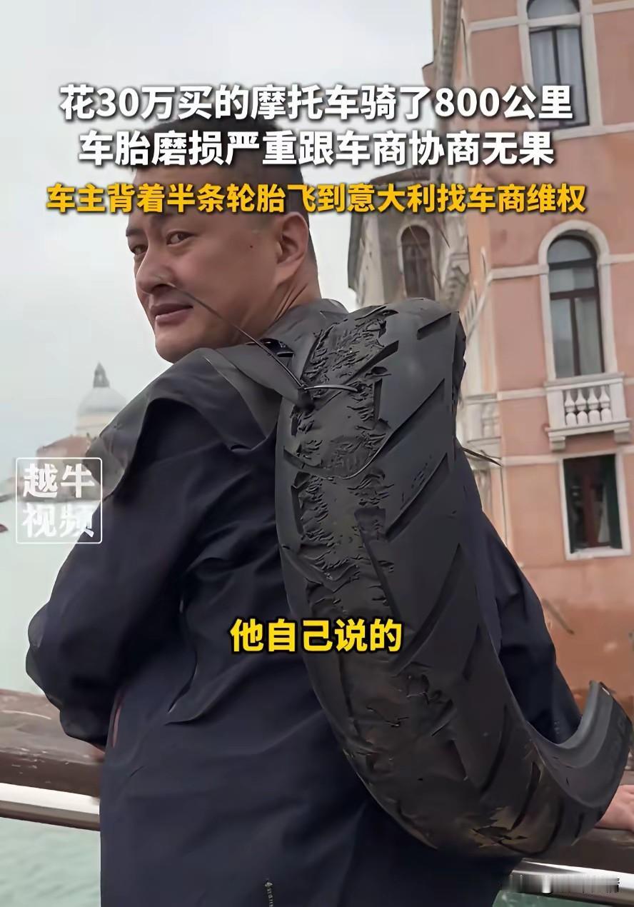 最强宝马摩托车维权哥, 直接自费到意大利宝马摩托车总部维权,原因是他花30万买的摩托车, 才行驶了800km, 车胎磨损非常严重, 这明显就是质量不合格, 和当地车商协商未果, 他一气之下背着轮胎, 前往了意大利米兰国际摩托车展, 开直播当场质问摩托车总部, 在米兰他将摩托车轮胎摆上宝马展台, 瞬间引起了当地媒体的关注, 获得的回复让人很震惊, 居然是国外和国内的标准不一样, 国内使用的是象牌的轮胎, 这和国外的轮胎不是一个供应商, 即使宝马这么丢人, 也没有积极解决此事, 必须把事情闹大, 有人给你解决, 双标如今在许多跨国企业很常见, 国外的产品和国内的产品两套标准, 这就是妥妥的欺负中国市场消费者, 大家对于宝马摩托车轮胎这事怎么看? 车主维权 宝马维权 宝马轮胎维权 宝马摩托轮胎 骑行维权 重庆宝马维权 摩托车维权