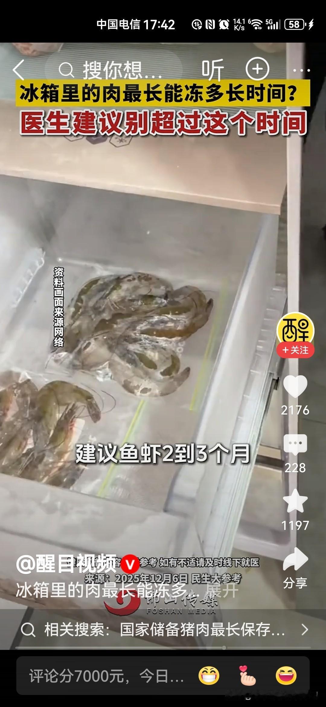 河南55岁的李女士,怎么也没想到,吃了一块家中解冻的肉,竟感染了李斯特菌,引发脑膜炎,差点危及生命。而这一切的根源,竟是我们都容易忽视的——冰箱里的肉,冻太久了。 医生紧急提醒:冰箱不是保险箱,冷冻只是延缓变质,并非永久保鲜。不同肉类,安全储存期限完全不同: ❄️ 鱼虾水产:2-3个月 ❄️ 猪、牛、羊等红肉:6-12个月 ❄️ 鸡、鸭等禽类:约6个月 ❄️ 香肠、培根等加工肉制品:不超过2个月 ⚠️ 冷藏室里的鲜肉,最好在2天内吃完! 很多人喜欢囤肉,觉得冻在冰箱里就“万事大吉”。李女士的遭遇,给我们狠狠敲响了警钟。肉类的冷冻期限,并非凭感觉,而是有科学依据的。超过安全期,即使外观没坏,营养流失、脂肪氧化、细菌滋生(特别是李斯特菌这类耐低温的)风险都会大大增加。 除了时间,还要注意方法: 1. 生熟分开,密封储存,避免交叉污染。 2. 大块肉最好按需分装,避免反复解冻。 3. 解冻建议用冷藏室缓慢解冻或微波炉解冻,尽量不要室温长时间放置。 健康无小事,一口吃进嘴里的,更是马虎不得。赶紧检查一下你家的冰箱,该吃的吃,该处理的处理。转发提醒家人,囤货可以,但千万别“囤”出危险! 健康科普 食品安全 生活常识