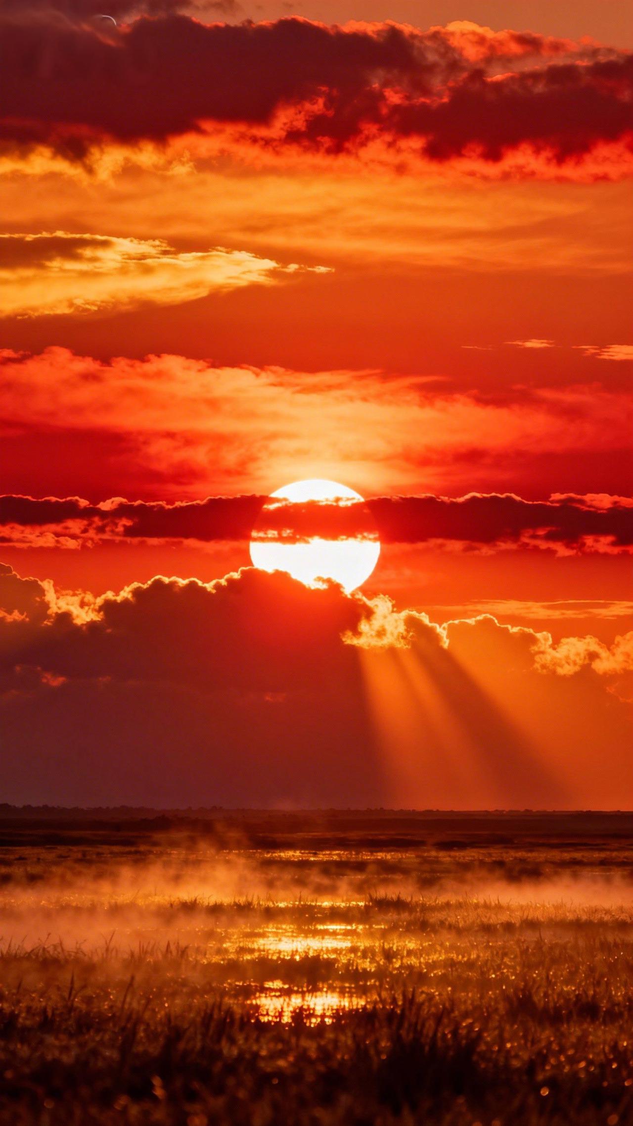 落日赴旷野 晚风卷着旷野的薄雾,橘红的落日半嵌在云层里,碎金似的光缕穿透层云,直直落进脚下的草甸。空气里裹着青草与水汽的微凉,光斑在摇曳的草叶上晃荡,像揉碎了一捧人间的温柔。 这一刻,所有的匆忙都被揉进暮色里。不必追赶时间,不必纠结对错,只静静站着,看落日一寸寸吻过地平线,看霞光把天地染成暖融融的橘。那些藏在心底的疲惫,好像都被这盛大的日落抚平了。 人间辽阔,日落无声,却总能接住所有的情绪。愿我们都能在奔波的日子里,撞见这样一场温柔的落日,与生活和解,与自己相拥。 落日余晖 旷野治愈