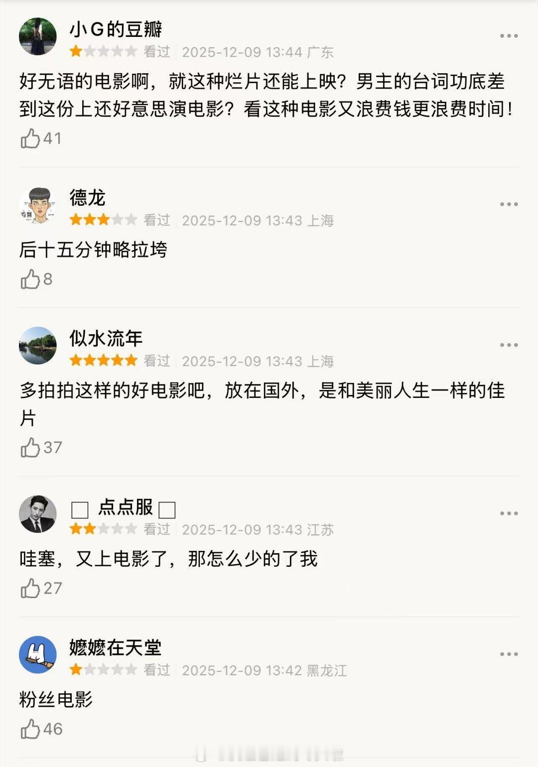 其实豆瓣真没必要这么明显,《得闲谨制》不至于豆瓣6.9分,我翻看了豆瓣的一些前排高赞都是4星(8分)居多,最新的评论都是很明显的针对,真实的观众的眼睛都是雪亮的。好看就是好看,难看就是难看,关注角色本身,聚焦在电影内容就行,反正我觉得电影挺好的。得闲谨制豆瓣开分6.9