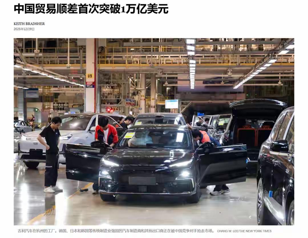 中国“贸易航母”破万亿。 西方集体破防,西方要掀桌子了。 就在前不久,也就是今年12月初,中国海关公布了一个令人震惊的数据,中国的贸易顺差突破了1万亿美元大关,而且仅仅用了11个月。这可是人类历史上从未有过的壮举啊! 要知道,在我们之前,就算是二战后工业超级发达的美国,还有80年代横扫全球的日本,都没达到过这个天文数字般的贸易净盈余。更厉害的是,中国取得这个成绩,还是在全球贸易保护主义最盛行、关税壁垒最高的大背景下。这就好比一个被四面围堵的水库,水位不但没下降,反而因为内部压力剧增,冲开所有缝隙,水都漫灌到全球各个角落啦。 美国那边一直在对中国加征关税,结果呢,中国今年对美的直接出口确实暴跌了近30%,可咱对东南亚、墨西哥以及其他新兴的全球南方国家市场的出口却在不断飙升。这就是所谓的“贸易转移”“转口贸易”啦,不管绕多少道弯,只要美国人还需要商品,源头的水还是来自咱们中国。 欧洲就更惨了,他们成了中国溢出商品的“蓄水池”。中国商品在欧洲市场展现出了碾压级的性价比,这让马克龙都忍不住抱怨,甚至用了“不可接受”“不可忍受”这样强硬的词来形容当前中欧的贸易失衡。欧洲人曾经引以为傲的汽车、电子等传统制造业,在咱中国的“新三样”电动汽车、锂电池和光伏面板面前,简直被打得毫无还手之力。 中国这1万亿美元的贸易顺差,意义可不一般。它标志着咱中国彻底坐稳了世界工厂,而且是高端世界工厂的位置。摩根士丹利的分析师还预测,到2030年,中国在全球出口中的份额还会继续扩大呢。 但是,这也意味着咱们接下来会面临更多的挑战。全球市场对中国商品的容纳能力是有上限的,我们不能永远靠“卷”来维持增长。这就好比打仗,这一仗我们靠产能和效率赢了,下一仗我们必须得靠消费和结构才能继续赢下去。 朋友们,你们觉得中国接下来要怎么做才能在全球贸易中继续保持优势呢?快来评论区留言告诉大家吧!