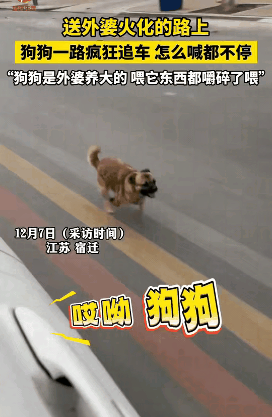 太好哭了!江苏老人离世送去火化,车子刚启动,家里养的小狗就疯了似的追出来,家人怎么喊都拦不住,四条小腿拼尽全力蹬着地面,眼里只盯着那辆载着主人的车,瞬间戳中所有人的泪点。 家人赶紧停车把它抱上车,这才让这场最后的送别有了圆满。孙女说外婆生前对狗狗格外疼,食物总嚼碎了喂,这份毫无保留的呵护,早换成了狗狗刻在骨子里的依恋。 狗狗不懂什么是永别,却清楚最爱的人要离开,它没叫一声,只靠拼命追逐诉说不舍,那份执着比任何哭声都让人揪心。我们总以为是自己在治愈宠物,其实反过来,它们用一生诠释的纯粹忠诚,才是最珍贵的馈赠。 没有复杂的心思,只有满心的牵挂,主人就是它们的全世界。那道追车的小小身影,早就告诉我们:真心从不会被辜负,跨越物种的爱,往往比人类的情感更戳人心窝。