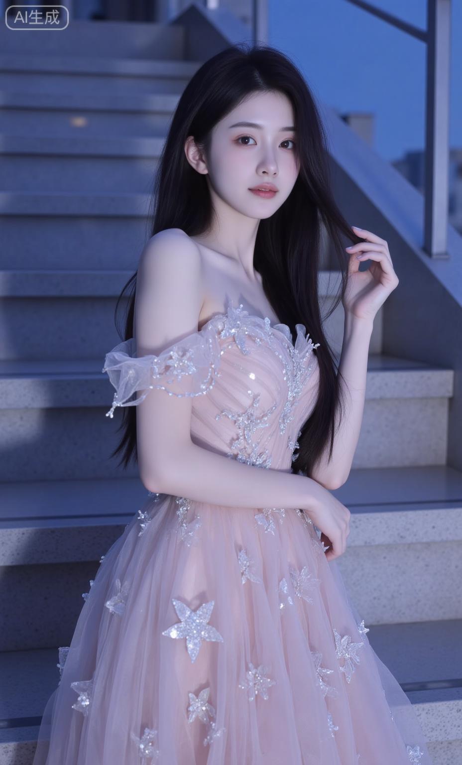 粉纱星光礼服+冷调背景=人间星光少女✨梦幻紫色礼服 马卡龙色礼服 粉珊瑚礼服裙