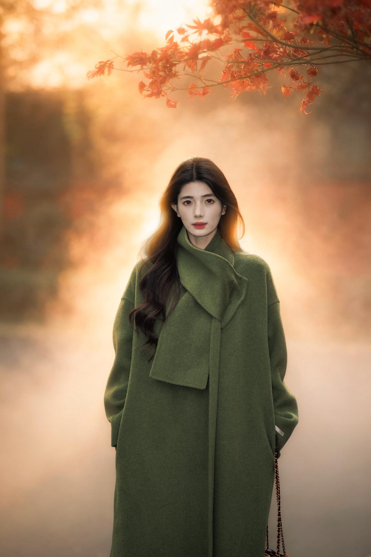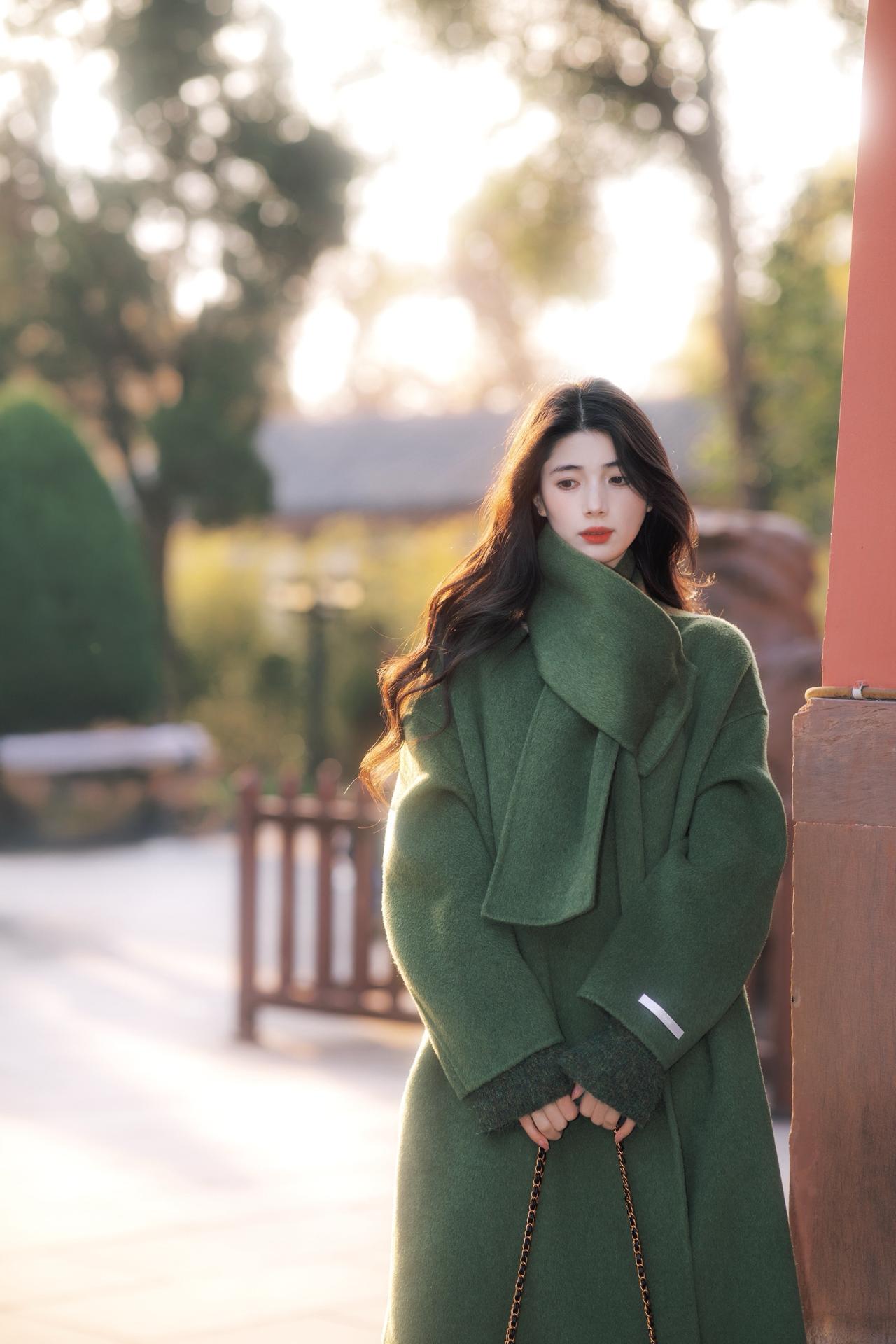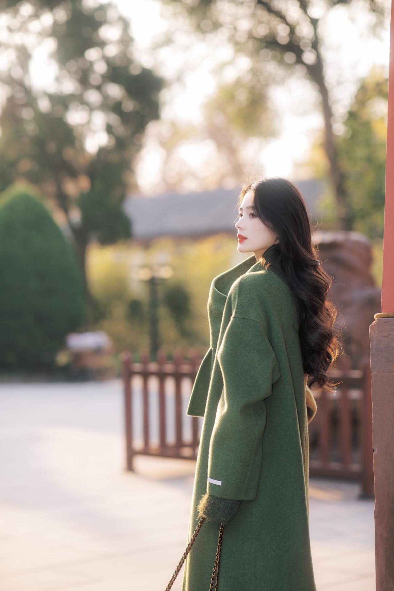 秋天的氛围感是绿色大衣给的~大衣控大衣穿搭大衣分享羊毛大衣
