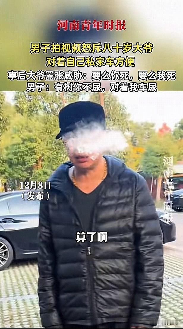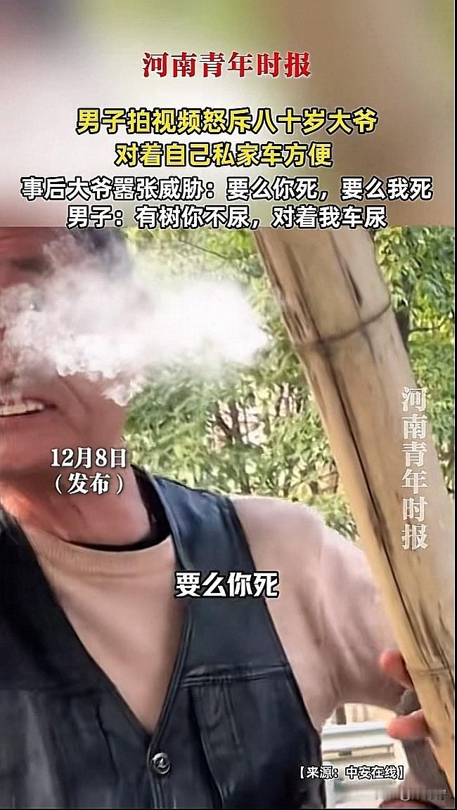 真是活久见!男子拍视频斥责八旬大爷“行为恶劣”,居然对着自己私家车方便,本以为抓包的大爷会歉疚,结果大爷牛的很,龇牙咧嘴,开口就是“要么你死,要么我死”,那凶悍的样子,隔着屏幕都能被吓到。 旁边的人就在劝车主“算了,算了”!最后车主也没辙,毕竟对方年纪大,真闹起来自己也不一定讨得好,只能自认倒霉。 这种明明自己占理,却因为对方年纪大而不得不妥协的无奈,经历过的人都深有体会,会有多堵心。 年龄大不是什么特权,不能成为没素质行为的理由,遵守公共道德、尊重他人财物,这是连小孩子都知晓的最基本道理。 不识好歹的老人 大爷行为 敢说真话的大爷 大爷怒了 无理取闹的大爷 怒怼老人 小伙怒怼老人 老人不尊重人 无素质的老人 气人老头 老人言行争议 大爷怒怼