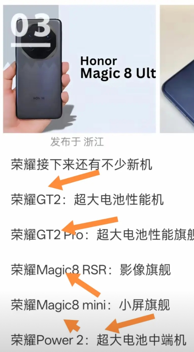 荣耀新机还有啊,在别的手机厂商偃旗息鼓之际,荣耀还有GT2系列以及POWER2,这两款系列一个主打性能一个主打续航优势! 更关键的是荣耀magic8系列还有RSR高端机,以及小屏幕magic8 mini,大家期待吗?