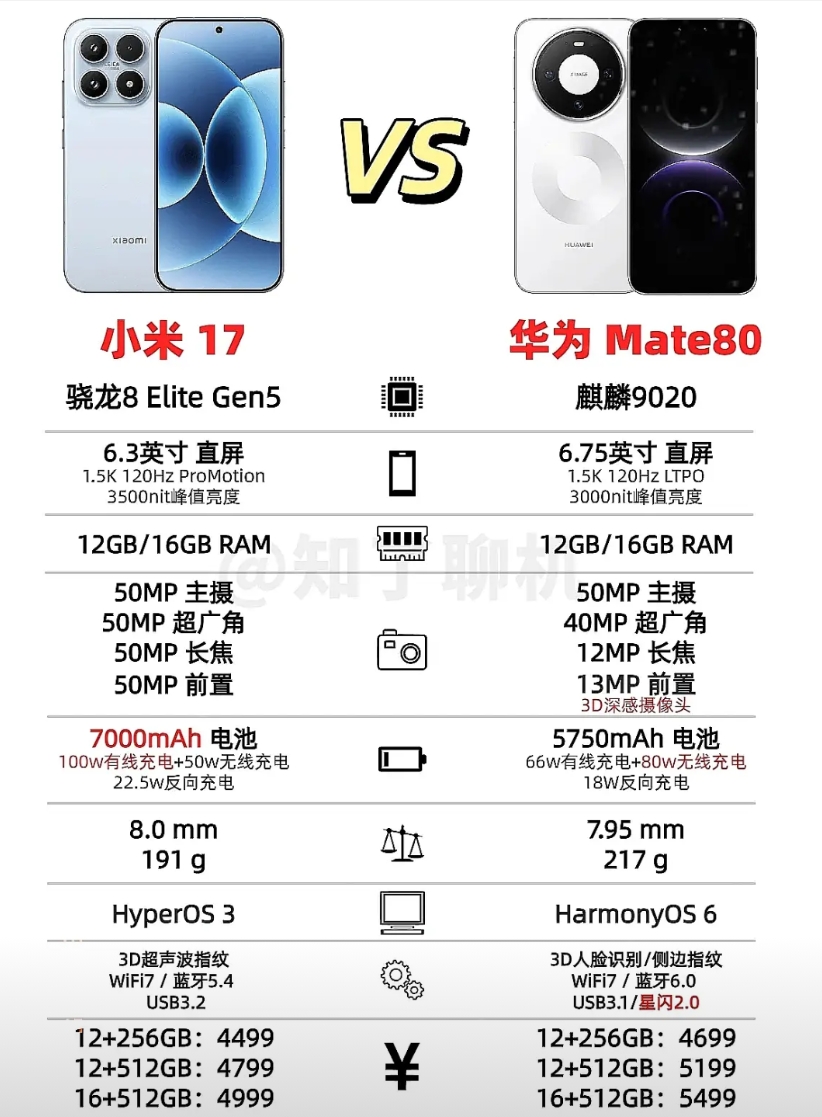 昨晚帮老同学选手机,他盯着小米17和华为Mate 80纠结到半夜。一个4499,一个4699,差这200块,愣是整出了难以选择。