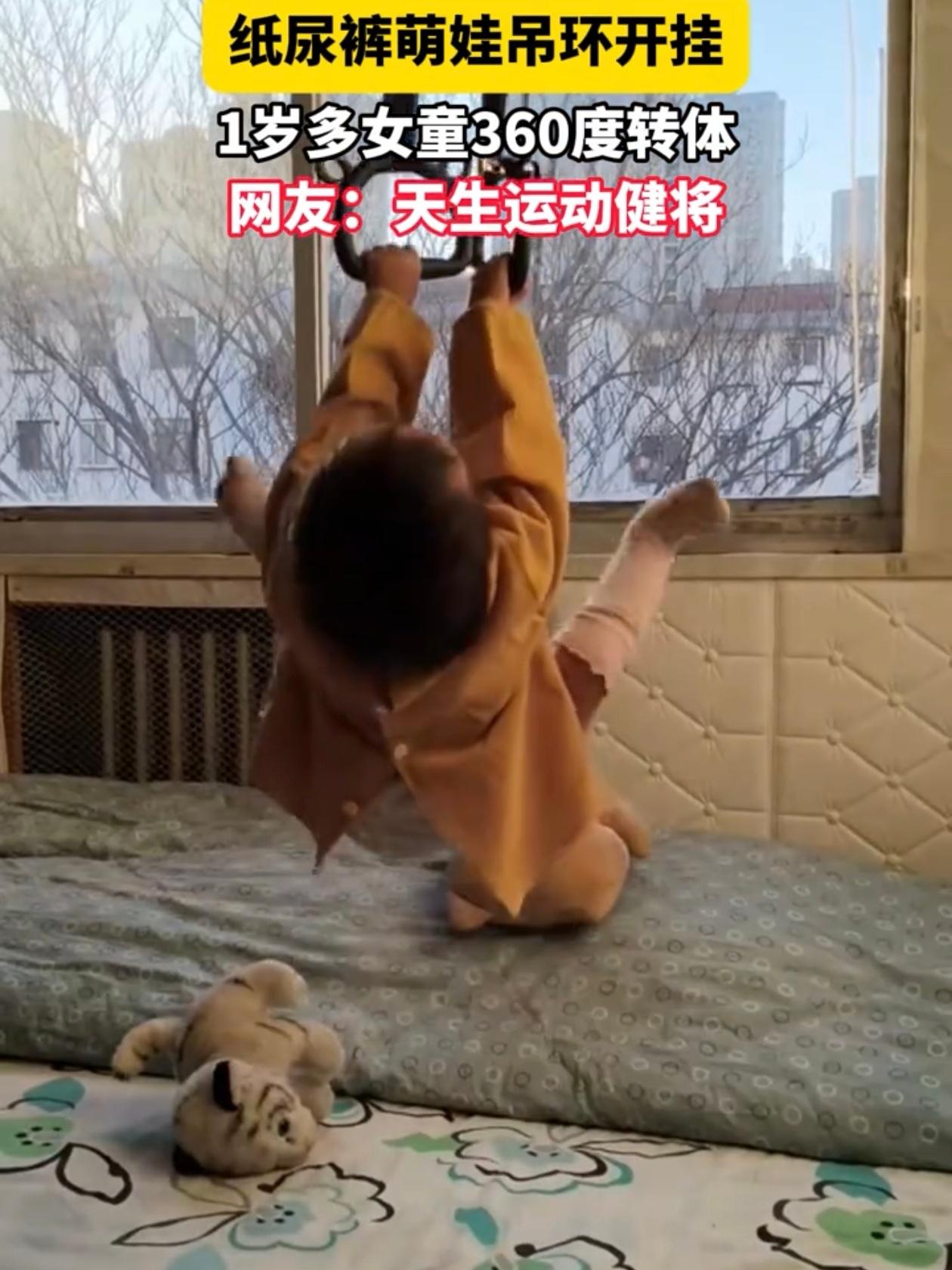 河北秦皇岛有个宝宝,才1岁多,没人教,单杠吊环上转体倒挂引体向上,自己摸索出来的,动作利索,妈妈拍视频发出去,网友看傻了,说孟婆汤掺水了,这孩子上辈子肯定练过。 宝宝刚会走那会儿精力旺,天天蹦,脚不爱沾地,喜欢吊着挂着,妈妈看他这样,卧室装了单杠吊环,想让他消耗消耗,结果上去就不下来了,抓着杆子自己晃,转一圈,倒挂一下,拉几下,没两天就会了。 妈妈在边上看着也懵,这玩意儿没教过啊,宝宝自己上去摸索摸索就成了,手抓得稳,身子一甩翻过去,倒挂着还笑,一点不怕,妈妈心里又惊又慌,怕摔着,可宝宝玩得欢,每天吊一会儿才肯罢休。 视频传开网友炸了,有人说天生体操苗子,身体素质在那儿,有人调侃孟婆汤掺了水,1岁多就引体向上,这天赋没谁了,评论区全是惊叹号,还有人喊体操队来人,赶紧看看这宝宝。 也有人提醒,宝宝骨骼软,关节没长好,这么吊着悬着,伤着咋办,得盯紧点,别光拍视频,孩子安全要紧,妈妈回说一直守着呢,地上铺垫子了,不敢松。 宝宝现在天天玩,单杠吊环就是他玩具,抓着就上,翻来翻去,妈妈习惯了,边上守着,手机举着拍,网友催更新,想看他又整出啥新花样,评论区天天问今天练了没。 这事儿看着稀奇,可也说明天赋这东西真玄,有的孩子生下来就带本事,别人练半天不会的,他一上手就成,宝宝这劲头要是保住,说不定真能走远,妈妈自己也没想到,装个单杠吊环消耗精力,结果整出个小体操运动员。 妈妈说现在就是让他玩,没想那么多,能动能跳就行,以后走不走体操这路等大点再说,让他开心就好,话这么说,可视频底下已经一堆人喊国家队来人了,还有人问在哪儿,想带孩子去学学。 你们觉得,这宝宝能不能成运动员。
