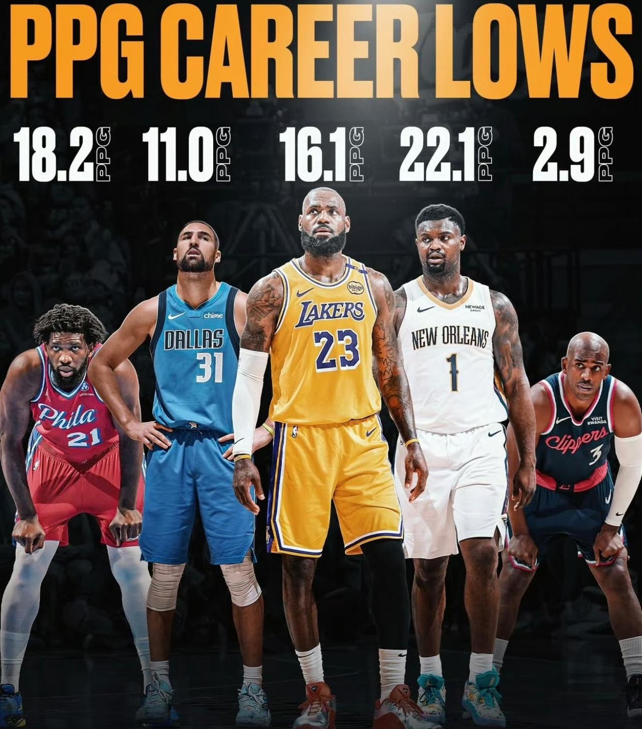 詹皇16分领衔生涯最低天团! 当41岁的詹姆斯开始‘啃老’自己16.1分的生涯最低,NBA的剧本终于癫成了我们不敢想的样子——原来超级英雄也会集体掉线! 【数据鬼才】保罗2.9分≈威少一节得分,网友辣评:“炮哥这是在打养生篮球版《活着》” 【人设崩塌】锡安22.1分竟成“胖虎最瘦成绩单”,虎扑热评:“这吨位换我上也得20+” 【玄学现场】克莱11分精准复刻G6汤“佛光返0”,勇士球迷:建议把篮筐加宽到太平洋 “当这些名字集体出现在‘生涯最低’榜单,我们突然懂了——原来时间才是终极MVP。”