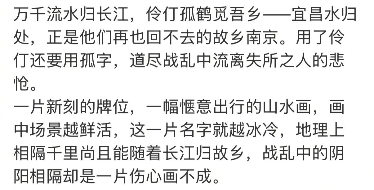 得闲谨制莫得闲家的对联看破防了 《得闲谨制》的细节真的太戳人了!小莫家这副对联直接让我看破防了!“万千流水归长江,伶仃孤鹤觅吾乡。” 直白讲就是想家、找家、回家,短短十四字,却是南京大屠杀后无数家庭的缩影。日寇铁蹄踏碎南京,偌大的莫家只剩太爷与莫得闲相依为命…老太爷佝偻着脊背,背上沉甸甸的不仅是行囊,更是莫家列祖列宗的牌位,那里面有他的儿子、孙子,是他拼了性命也要守护的念想。流水尚能归海,他们的乡愁却留在牌位木纹里,刻在对联墨迹中。但这从不是结局,绝境中他们觉醒,唯有驱逐外敌,才能终结颠沛流离,护得亲人安宁。《得闲谨制》太多细节可以扒了,必须二刷再去看看了!