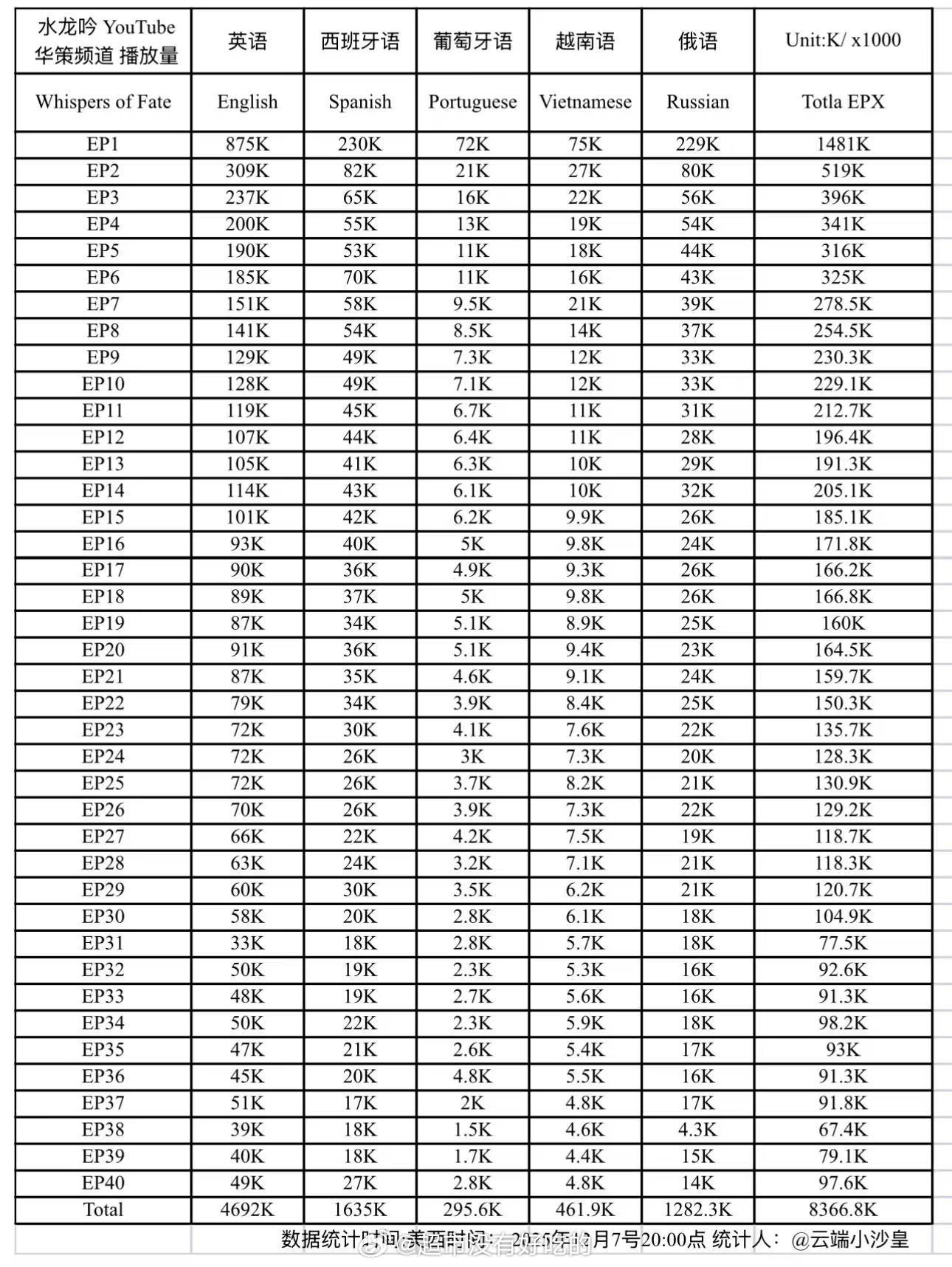 罗云熙水龙吟YouTube油管华策频道累计播放量达到837万🎉