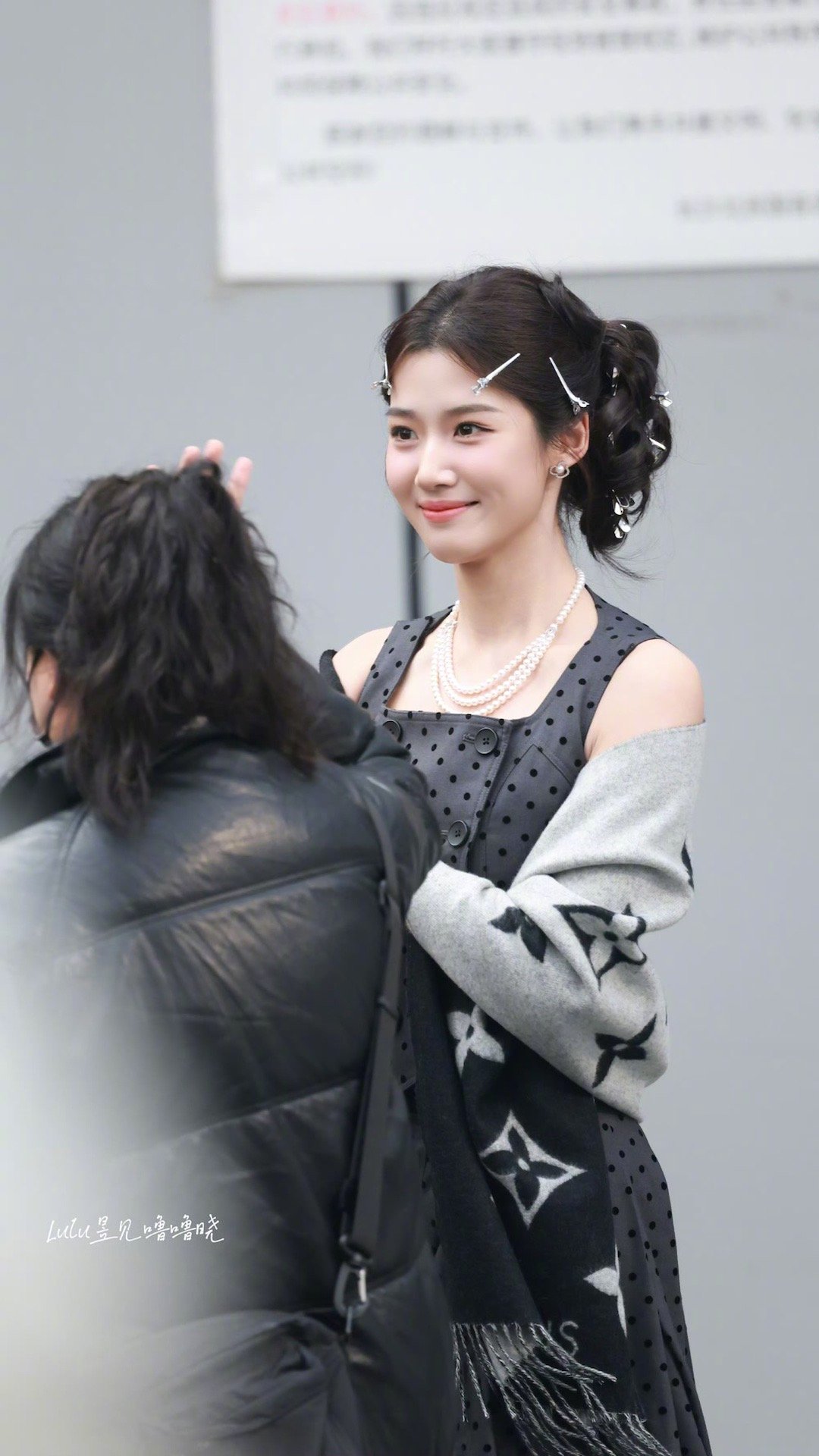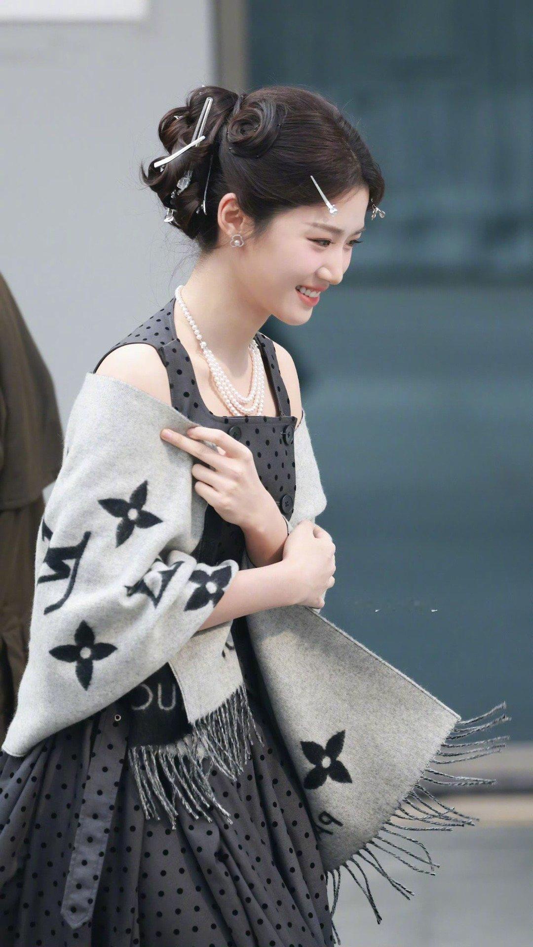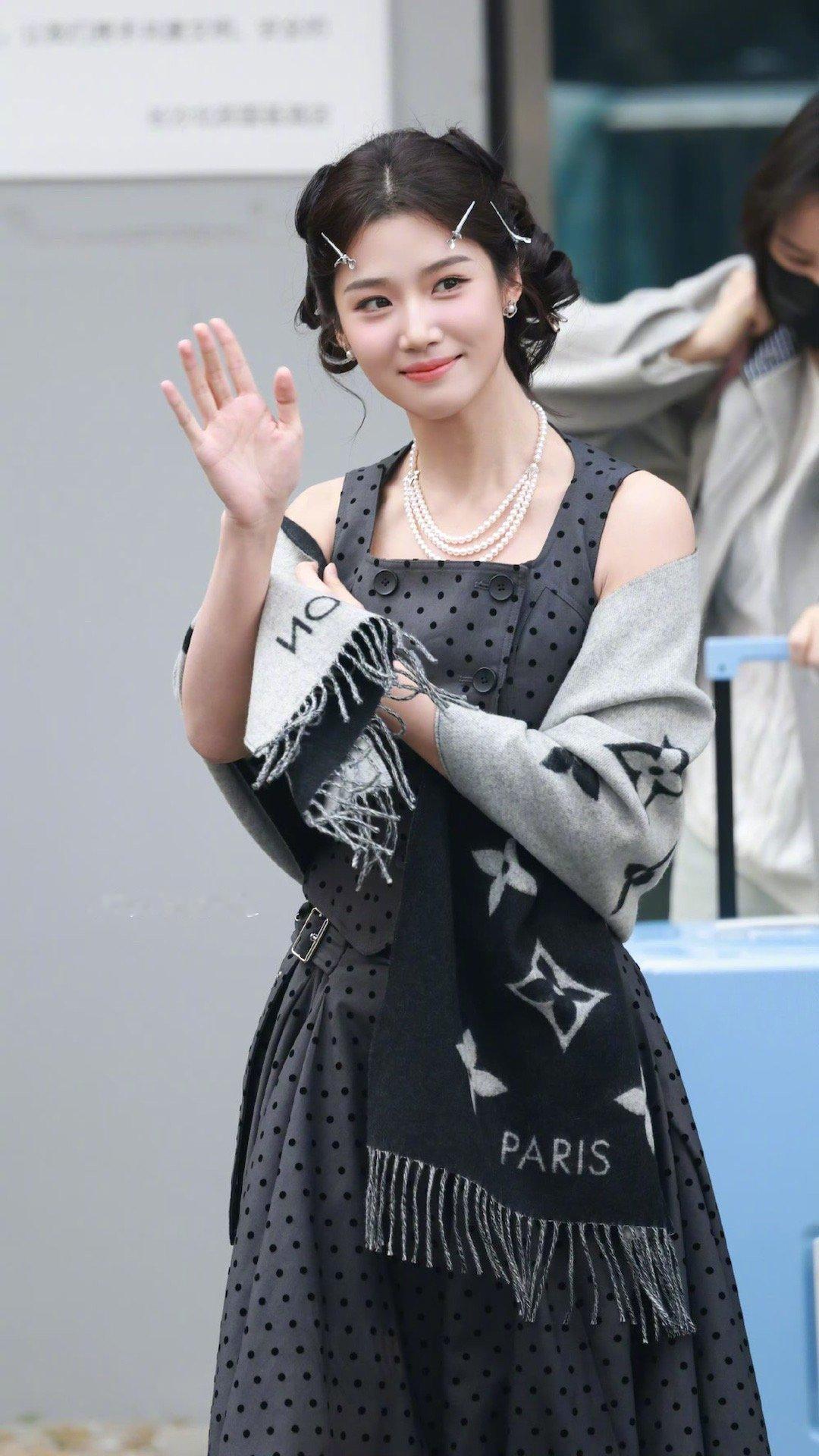 卢昱晓hi6上班造型路透 卢昱晓hi6上班路透🈶️灰色波点长裙完全沪上千金来的!!!录制顺利期待这个噜噜晓~