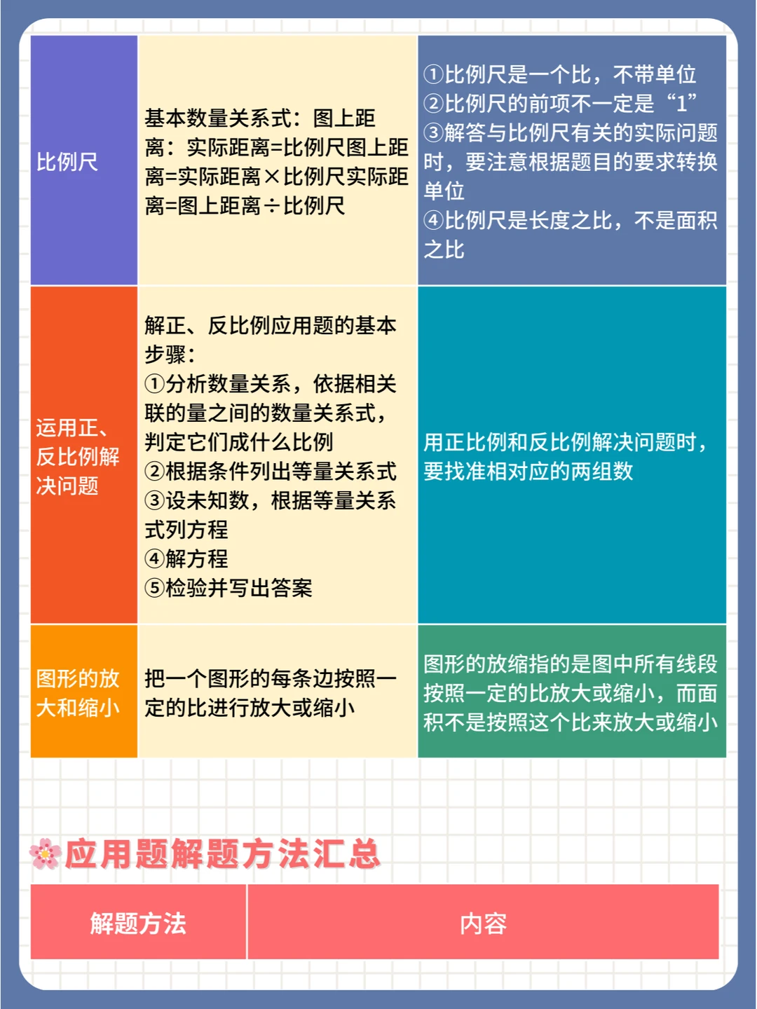 此外,除了典型应用题之外,还有一般复合型应用题、分百数应用题、比例应用题、列方程解应用题等等,但是无论应用题形式如何变化,解题方法大致可以归纳为以下几种: