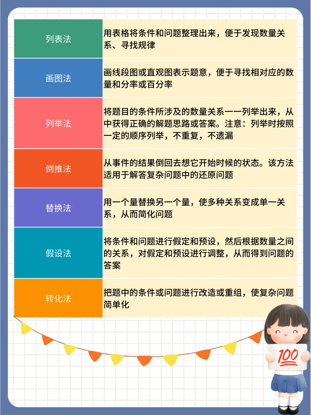 1️⃣列表法 : 用表格将条件和问题整理出来,便于发现数量关系、寻找规律✨