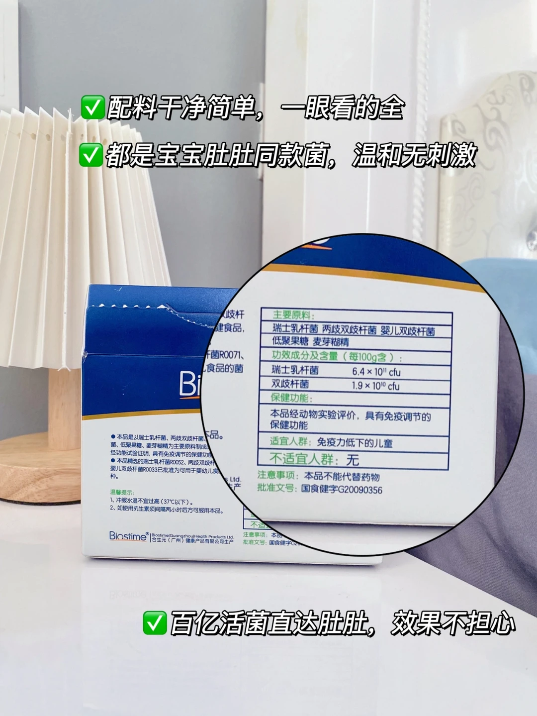 这益生菌里配的婴儿双歧杆菌R0033,我研究下来是比较优秀的👍,也比较对口,是健康宝宝肚肚里的同款,刺激性几乎可以忽略,宝宝肠胃弱也能安心吃。而且像平时比较担心宝宝便便不ok、不吸收的宝妈们也可以看看这个。