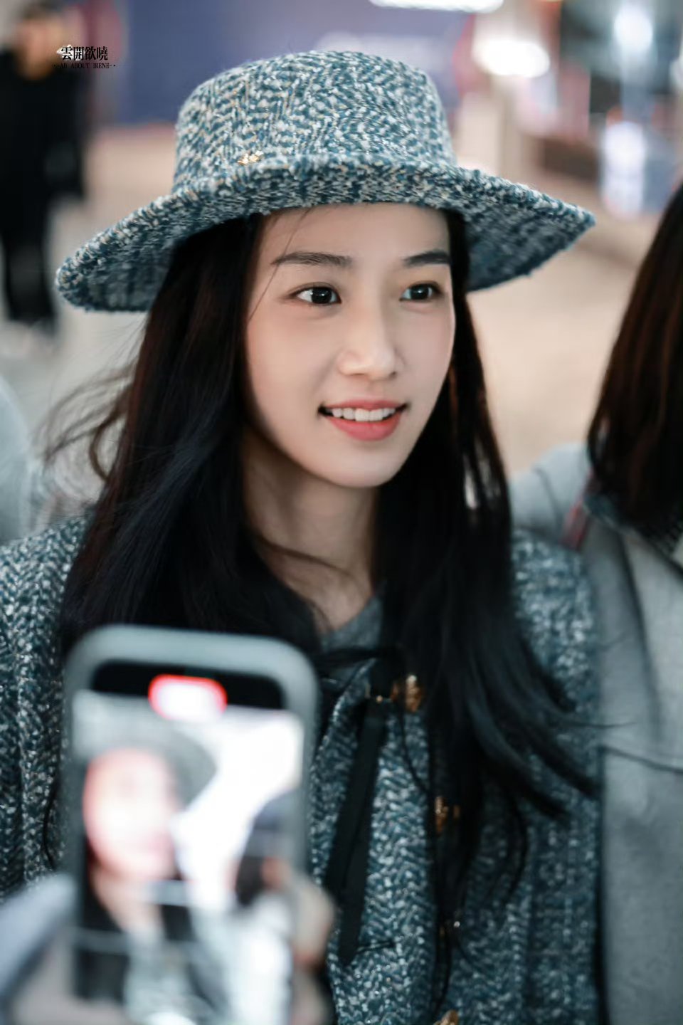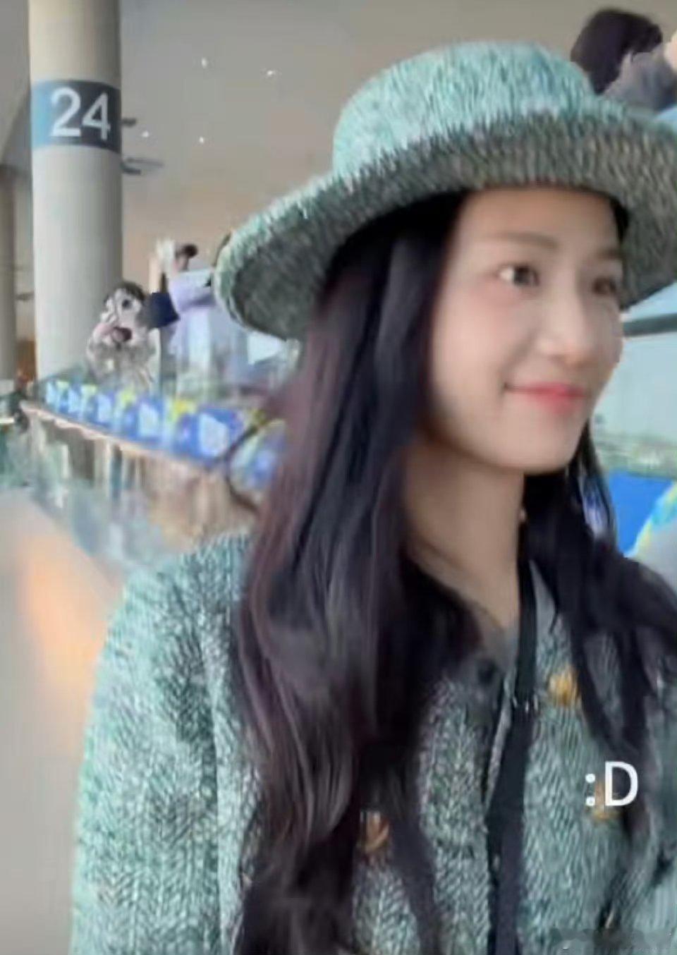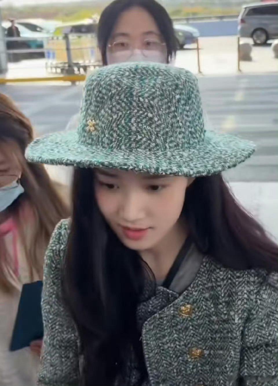 卢昱晓今日机场路透,小香风穿搭好好看啊,淡妆超水嫩的,好美!