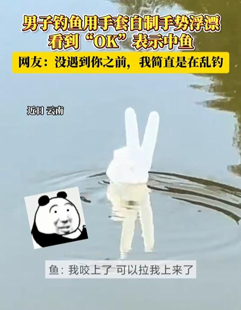 万万没想到!云南,一位钓鱼的男子不挂浮漂,却把塑料手套绑在鱼线上丢进水里,神奇的是,当手套在水里摆出“OK”的姿势时,就代表着有鱼咬钩了。网友:鱼:欧克,可以拉了,耶! 这天,男子像往常一样来到河边钓鱼,可苦苦等待,也未能看到什么起色。正当男子准备回家的时候,突然看到带来准备拌鱼食的塑料手套。 也不知道怎么想的,脑中突然灵光一现,将手套吹满气之后,弄成了一个“O”的姿势,绑在鱼线上,调整好深度,将手套当成浮标,就丢进水中。 可能是“O”的原因,新浮标没投入水中多一会儿,“O”就变成了“OK”的样式,男子立即就将鱼竿给提了上来。因为,有鱼上钩了! 看到男子的突发奇想,有网友说:鱼:欧克,可以拉了,耶 还有网友说:鱼:这日子太难过了,鱼漂五花八门的真的是防不胜防…… 也有网友说:鱼;没看到吗?我都给你比“OK”了,你还等什么呢啊?沙楞的啊? 替这些鱼发个声吧!实在是太难了!