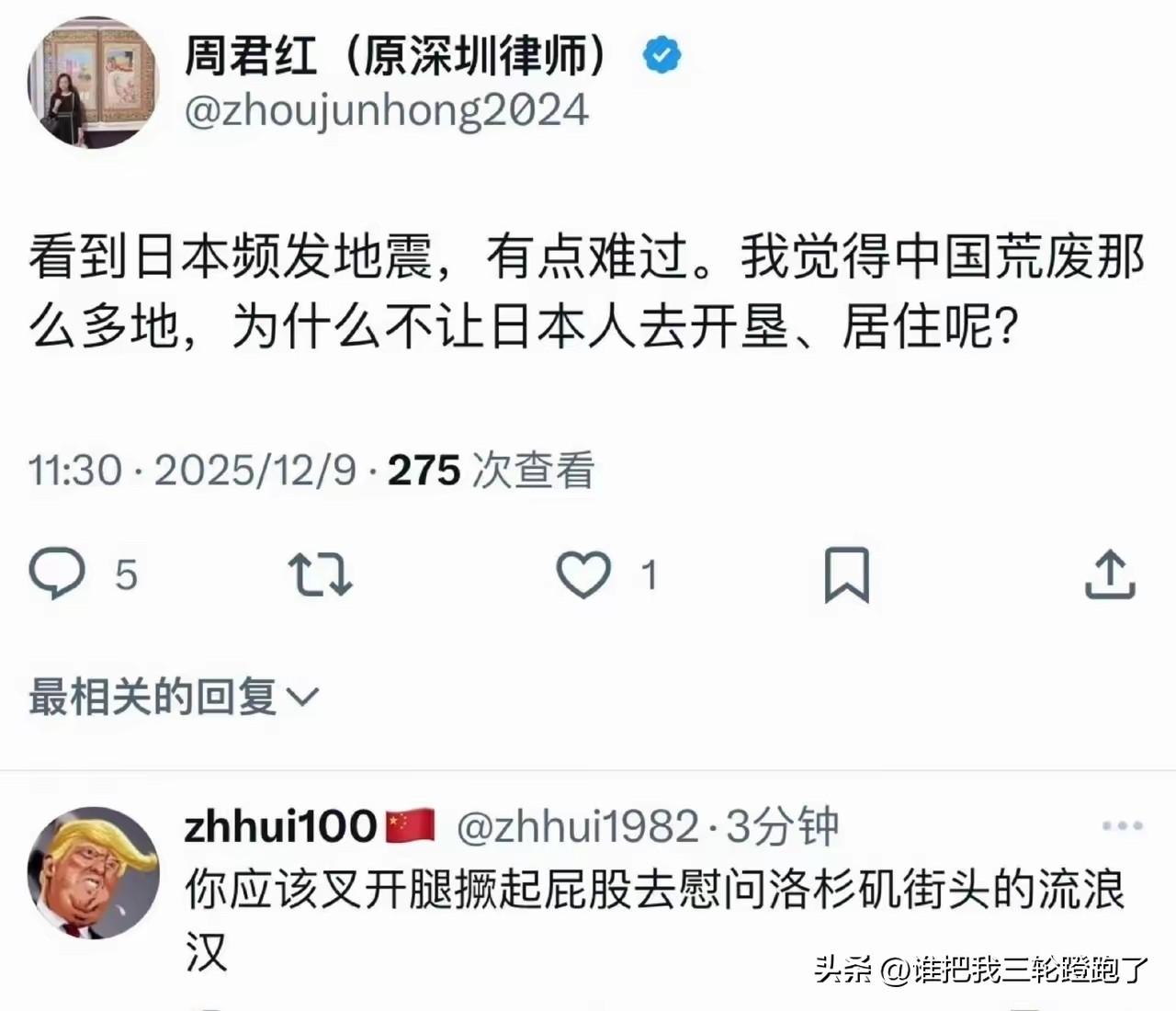 太奇葩,终于见识了什么是圣母心,看看周军红说的话:“看到日本频发地震,有点难过,我觉得中国荒废那么多地,为什么不让日本人去开垦,居住呢?” 这番言论一出,立刻在社交平台引发了巨大争议,不少网友直言这种想法既脱离现实,又忽视了国家主权和历史经纬,所谓的“圣母心”已经越过了理性和底线。单从地理和现实层面来看,这种提议就完全站不住脚,中国所谓的“荒废土地”,大多是生态保护区、待开发的山地荒漠或是基本农田保护区,本身就有明确的功能定位,绝非可以随意对外开放的闲置空间。 先说说所谓“荒废土地”的真相,中国的土地资源向来有严格的规划管控。那些看似未被大规模开发的区域,要么是为了保护生态设立的自然保护区,承担着涵养水源、维护生物多样性的重任,要么是干旱缺水、土壤贫瘠的戈壁荒漠,本身不具备大规模居住和开垦的条件,还有一部分是划入基本农田红线的后备耕地,是保障国家粮食安全的“保命田”。这些土地的存在,是国家长远发展的战略储备,不是可以用来“收留”他国人口的闲置资源。 再谈国家主权层面的核心问题,土地是一个国家主权的重要载体,允许他国人口大规模迁入居住和开垦,涉及到的不只是土地使用问题,还牵扯到户籍管理、司法管辖、文化融合等一系列复杂的主权议题。历史上,任何国家都不会轻易开放本国土地供他国大规模定居,这是维护国家主权和领土完整的基本底线。周军红的提议,显然是把人道主义关怀和国家主权混为一谈,忽略了最基本的国家治理逻辑。 更值得警惕的是,这种言论还忽视了历史和现实中的复杂情感与利益纠葛。中日两国虽有民间友好往来,但近代史上日本侵华战争给中国人民带来的深重灾难,至今仍是很多国人心中无法磨灭的记忆。且不说这种定居提议在情感上难以被大众接受,单从现实来看,日本是发达国家,其国内的防灾减灾体系和应对地震的能力,远高于很多国家,日本民众也有强烈的家国认同感,大规模迁居中国既不现实,也不符合日本民众的意愿。 这种“圣母心”言论的本质,是一种脱离实际的空想式善良。真正的人道主义关怀,应该建立在尊重国家主权和现实国情的基础上,比如在地震发生后提供力所能及的物资援助、分享防灾减灾经验,而不是提出这种突破底线、不切实际的提议。那些跟风附和这种言论的人,往往是被片面的善良裹挟,没有考虑到提议背后的复杂问题和潜在风险。 在社交平台的讨论中,也有理性声音指出,每个国家都有自己的国土和生存发展空间,应对本国的自然灾害和人口问题,是各国政府的责任。中国在自身发展过程中,始终坚持走可持续发展道路,合理利用和保护土地资源,同时也会在力所能及的范围内向其他国家提供帮助,但这种帮助绝不可能以牺牲国家主权和利益为代价。 这种言论也反映出部分人对国家土地政策和主权概念的认知缺失。在信息爆炸的时代,很多人容易被情绪裹挟,发表一些看似善良却缺乏常识的言论,这也提醒我们,在表达人道主义关怀的同时,必须坚守基本的国家立场和客观现实,不能让“善良”变成失去理性的空谈。 各位读者你们怎么看?欢迎在评论区讨论。