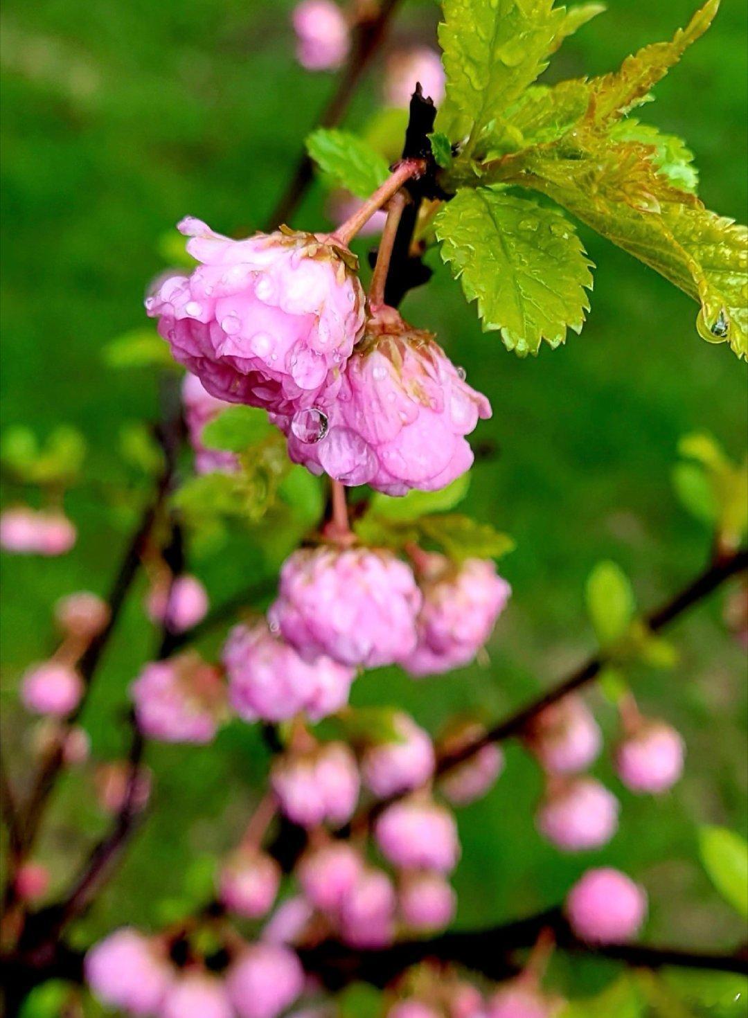 榆叶梅(学名:Amygdalus triloba (Lindl.) Ricker,别名:小桃红),蔷薇科桃属双子叶植物。它喜光,稍耐阴,耐寒,能在-35℃下越冬,对土壤要求不严,以中性至微碱性而肥沃土壤为佳。其高2~3米,具多数短小枝,小枝灰色;冬芽短小,枝紫褐色,叶宽椭圆形至倒卵形;花单瓣至重瓣,紫红色,1~2朵生于叶腋,花期4月;核果红色,近球形,有毛。