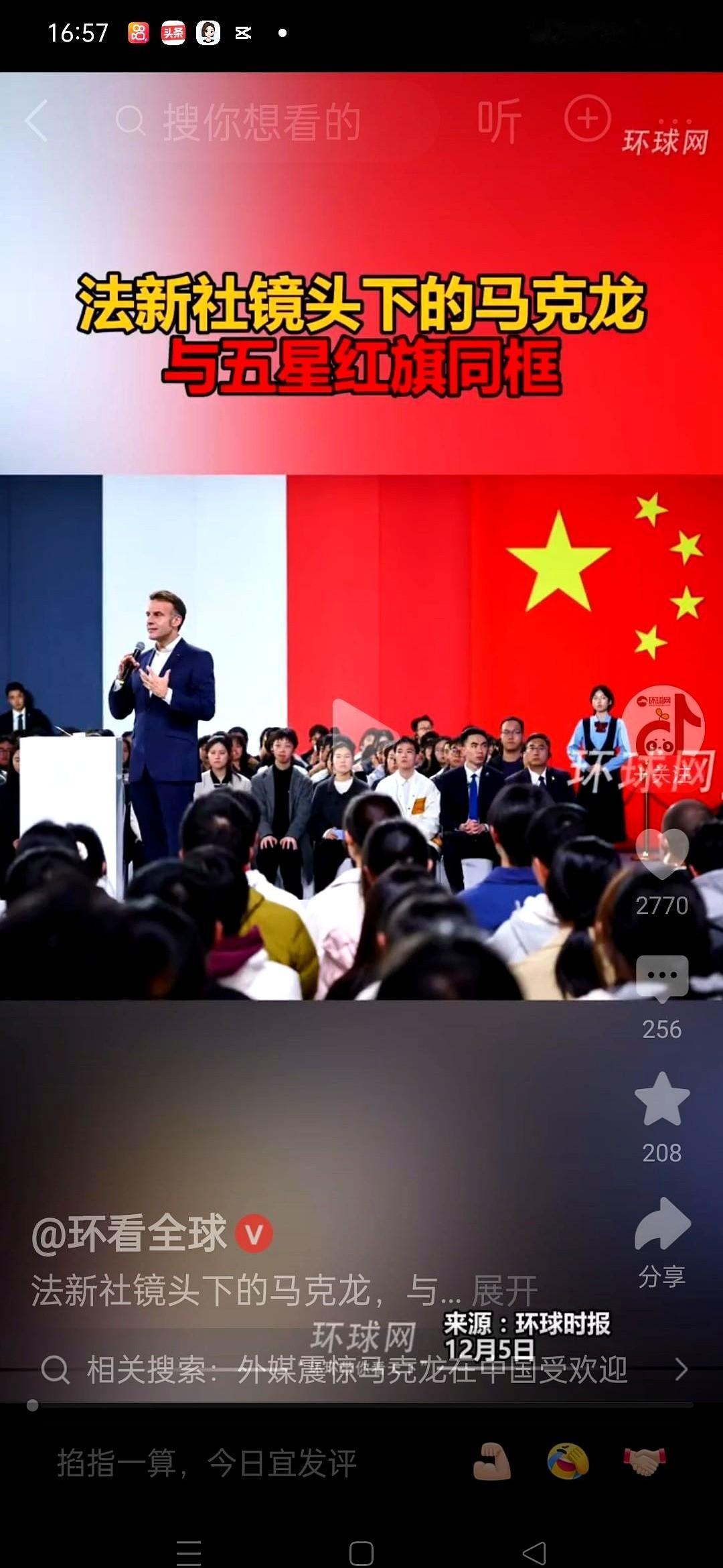 就这张图,一开始我还以为谁手欠给P了。 定睛一看,好家伙,是法国人自己送的“外挂”。 法国国旗不是蓝白红嘛,他刚好站在中间,我们红旗的红,无缝衔接了他们国旗的红。中间那一道白,猛一看,还以为是墙面呢。 这构图,你说巧不巧? 简直是天意。摄影师是懂运气的,老马是懂站位的。 更绝的是他那句话:“唯一的遗憾是时间太短”。 看到没,嘴上说着意犹未尽,身体(和背景)却很诚实嘛。 这种事儿,真挺奇妙的。 有时候,一个不经意的瞬间,一张无心插柳的照片,比一万句精心设计的场面话,都来得有劲儿。 它不讲道理,直接把一种氛围、一种情绪,砸到你面前。 这就是大国自信的气场吧。 你来,我盛情款待,坦坦荡荡。你感受到了,你表达出来,我们看到了,会心一笑。 一切尽在不言中。
