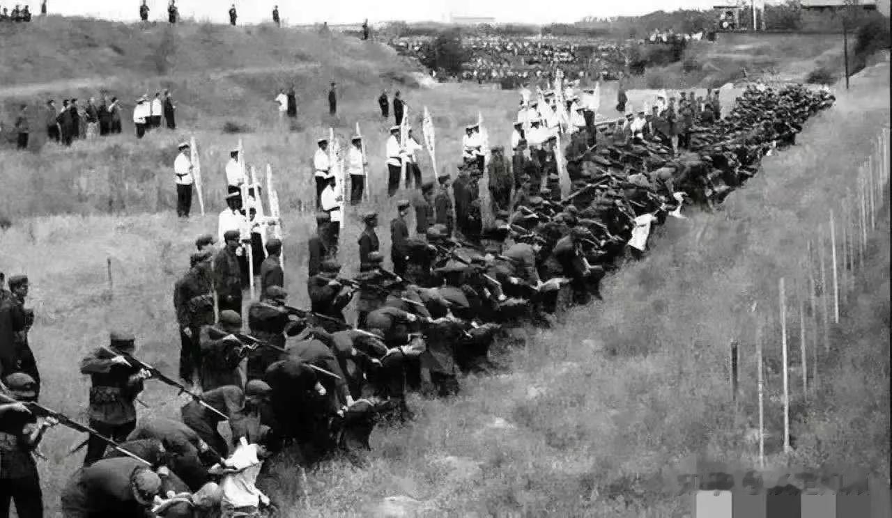 照片上,行刑的士兵,为什么要把枪上的刺刀都打开?