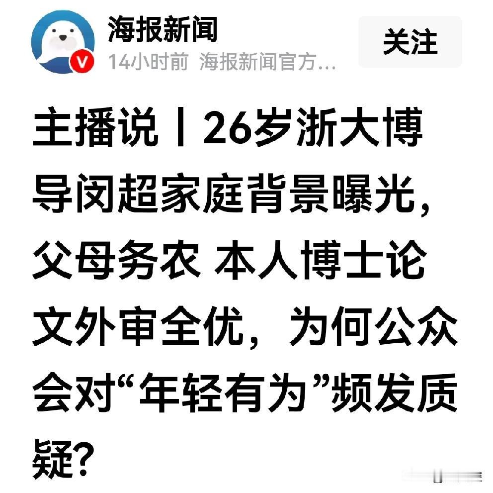 闵超不应该被不怀好意的人质疑。究其原因无非是大学里造假的教授学者如今多起来,也就是被媒体揭穿后的发酵效应。一位青年学子凭自己的实力做研究生导师本应该是皆大欢喜庆贺一下,没想到有人以各种方式炒作自己在社交媒体平台赚取流量,甚至嘲弄其本人和浙江大学。实属不该。基本信任还是需要的。因为一所知名大学会有判断力,它自己培养的学生它很清楚底细,别人也就是放大自己怀才不遇的委屈感,有着极其消极的影响,不可取。社会之风气必须有正向性,平台要负责任,毛主席他老人家经常说“没有调查就没有发言权”,局外之人,别瞎咋呼啊。
