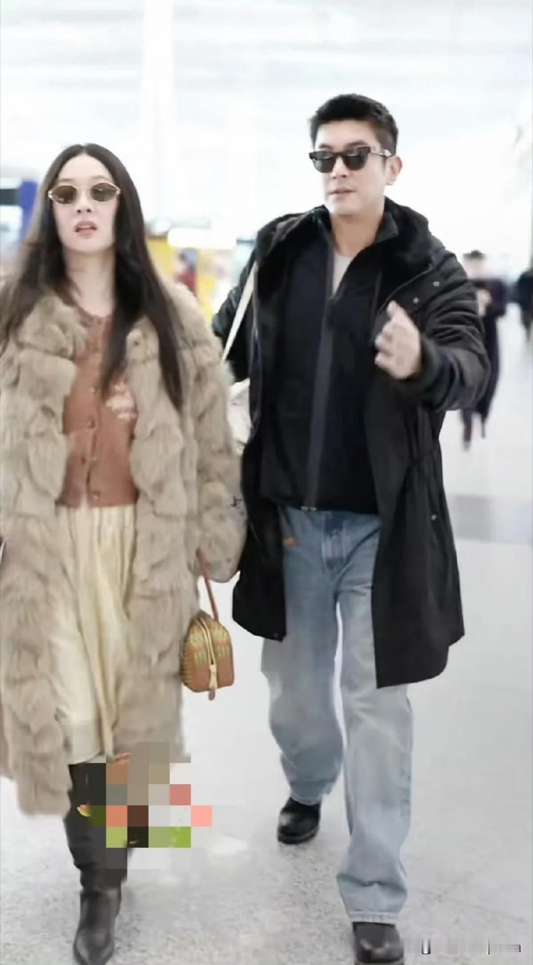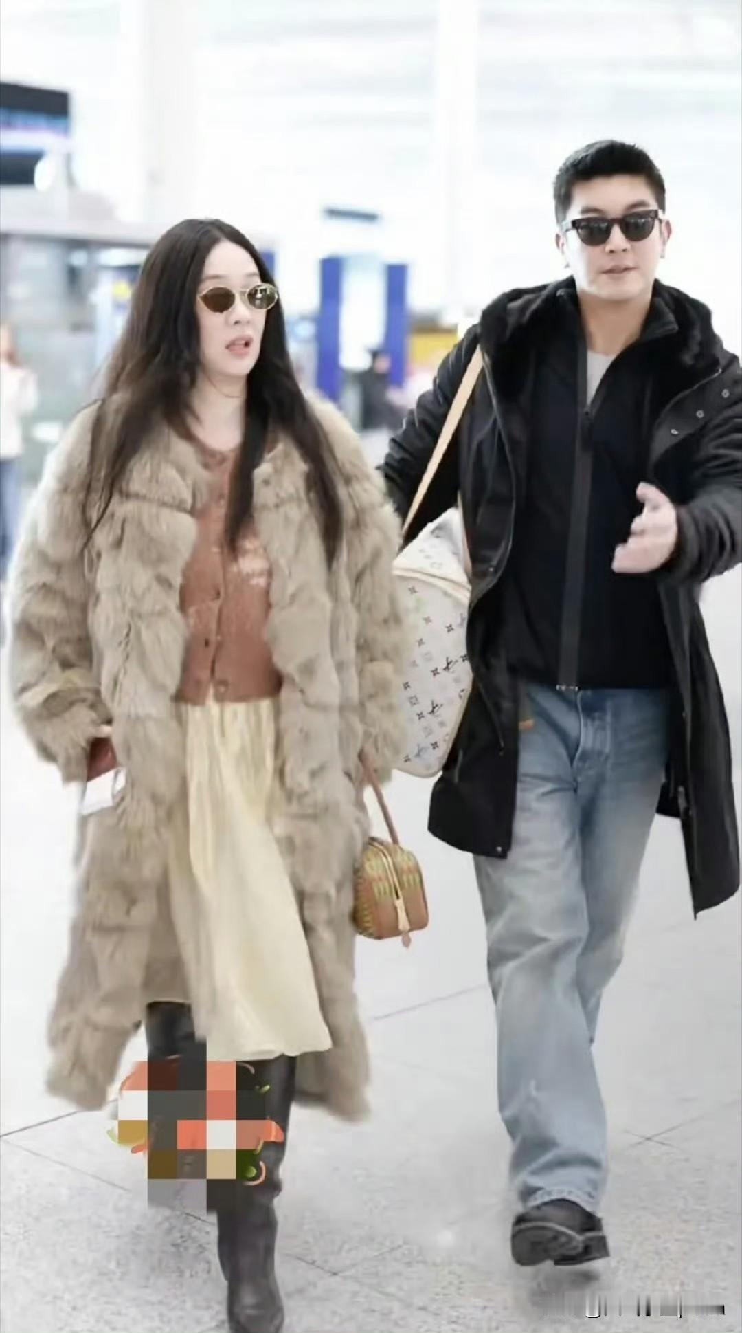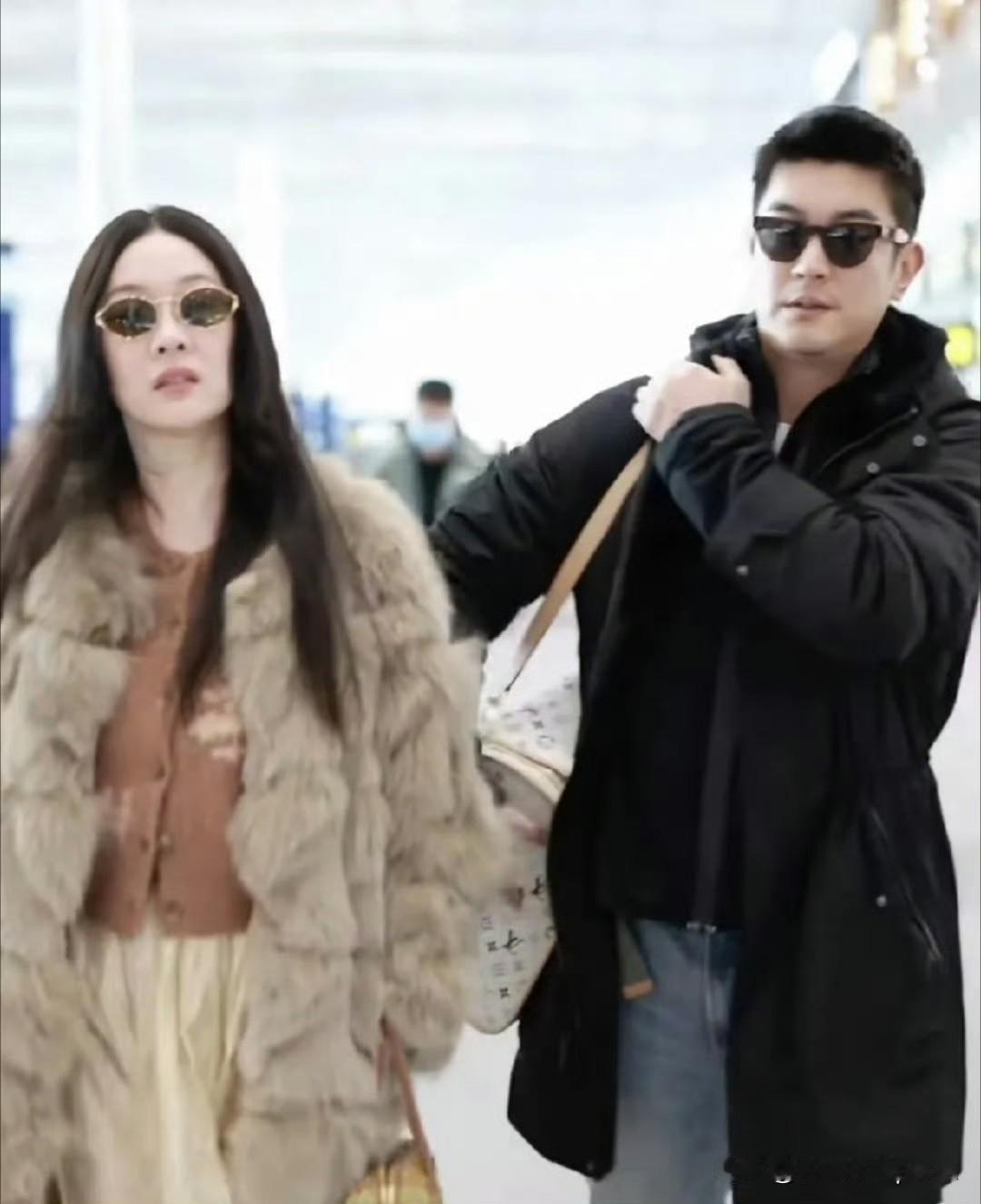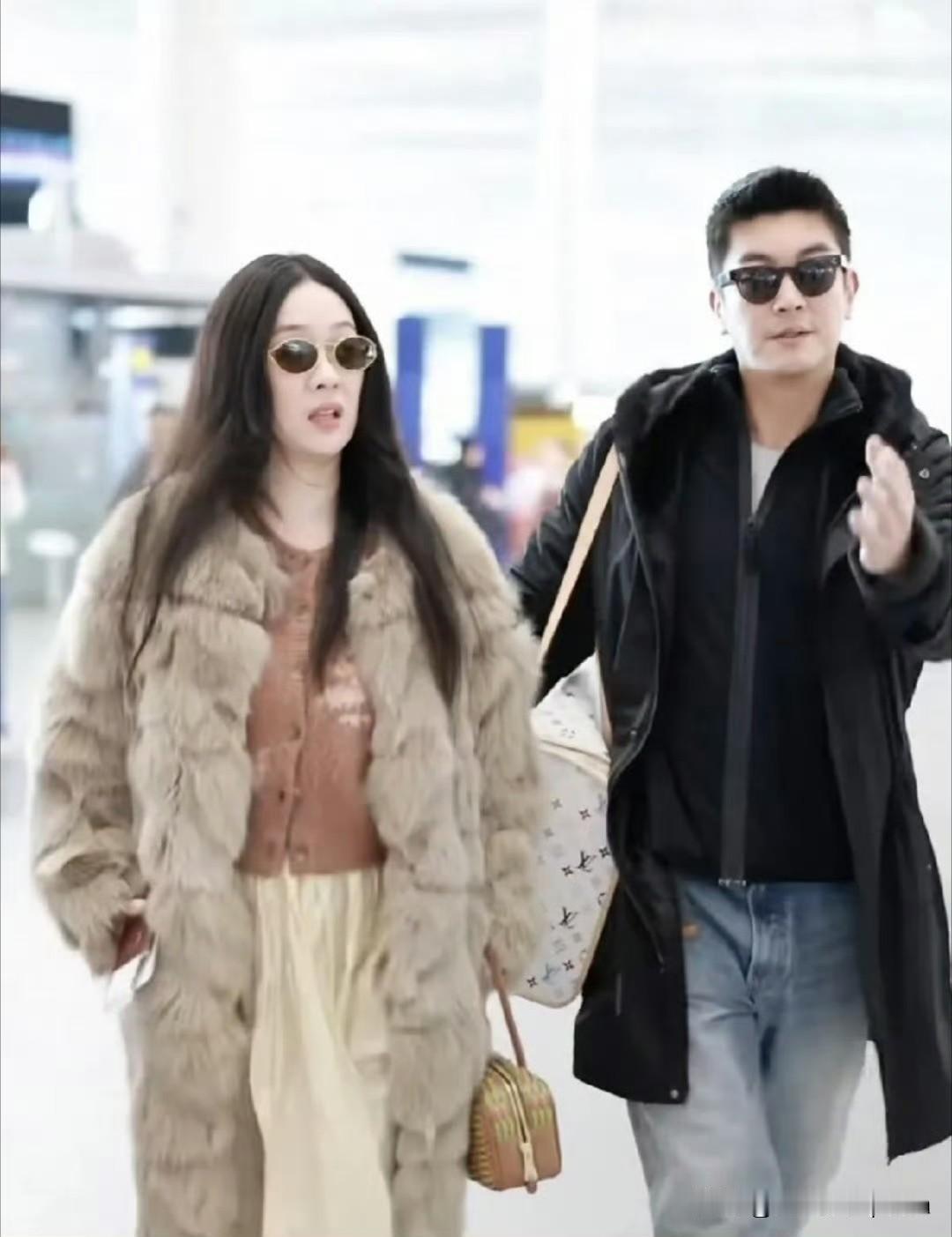 霍思燕这机场look真是把“女明星出国”氛围拉满了! 皮草一披墨镜一戴,长发飘飘走路带风,贵气直接溢出屏幕。 不过说气场直逼李湘还挺有意思,都是明艳挂女明星,一个像奢华贵妇一个像霸总夫人,各有各的飒。杜江在旁边倒是成了低调背景板哈哈。 不过皮草看着挺厚,这是要去冷地方度假? 两人难得同框秀恩爱,这波机场街拍属实赢麻了~