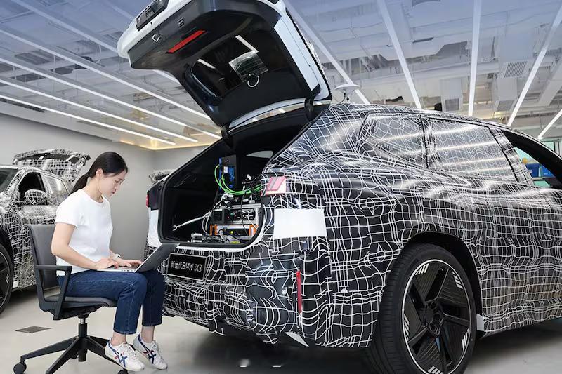 宝马国产宝马iX3曝光 国产宝马iX3也将加长!国产宝马X3加长了110mm,与BMW X5标准轴距版一致,而国产宝马iX3加长后的尺寸也将和X5标准轴距版相当