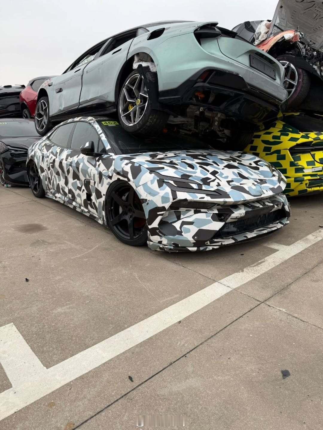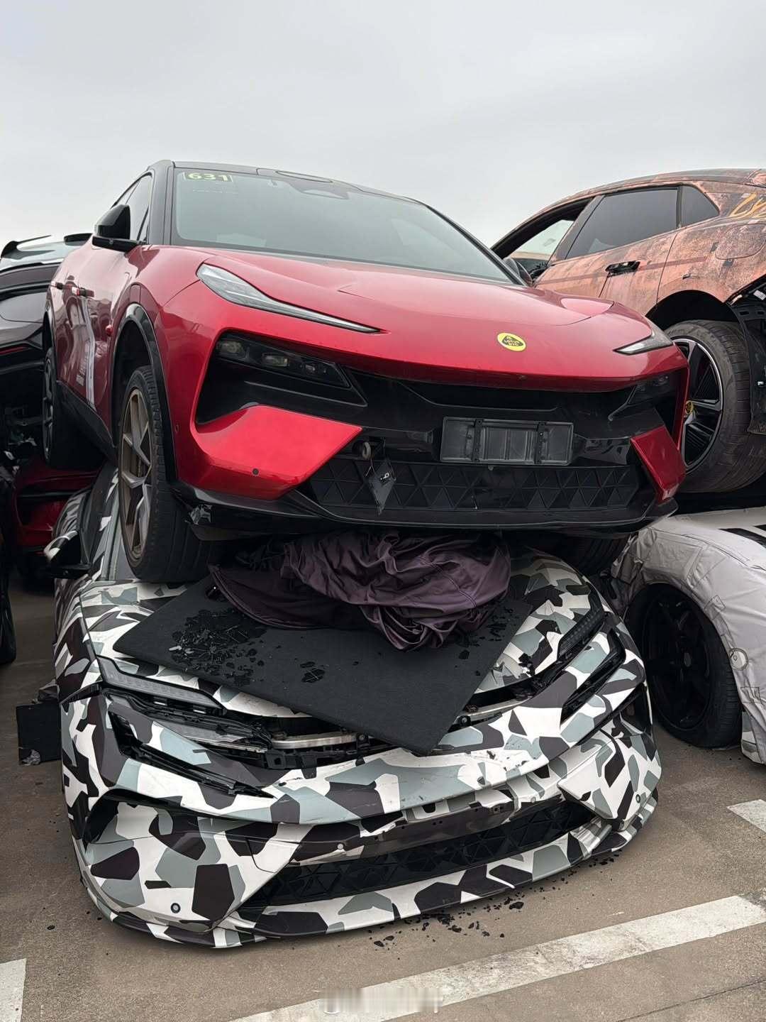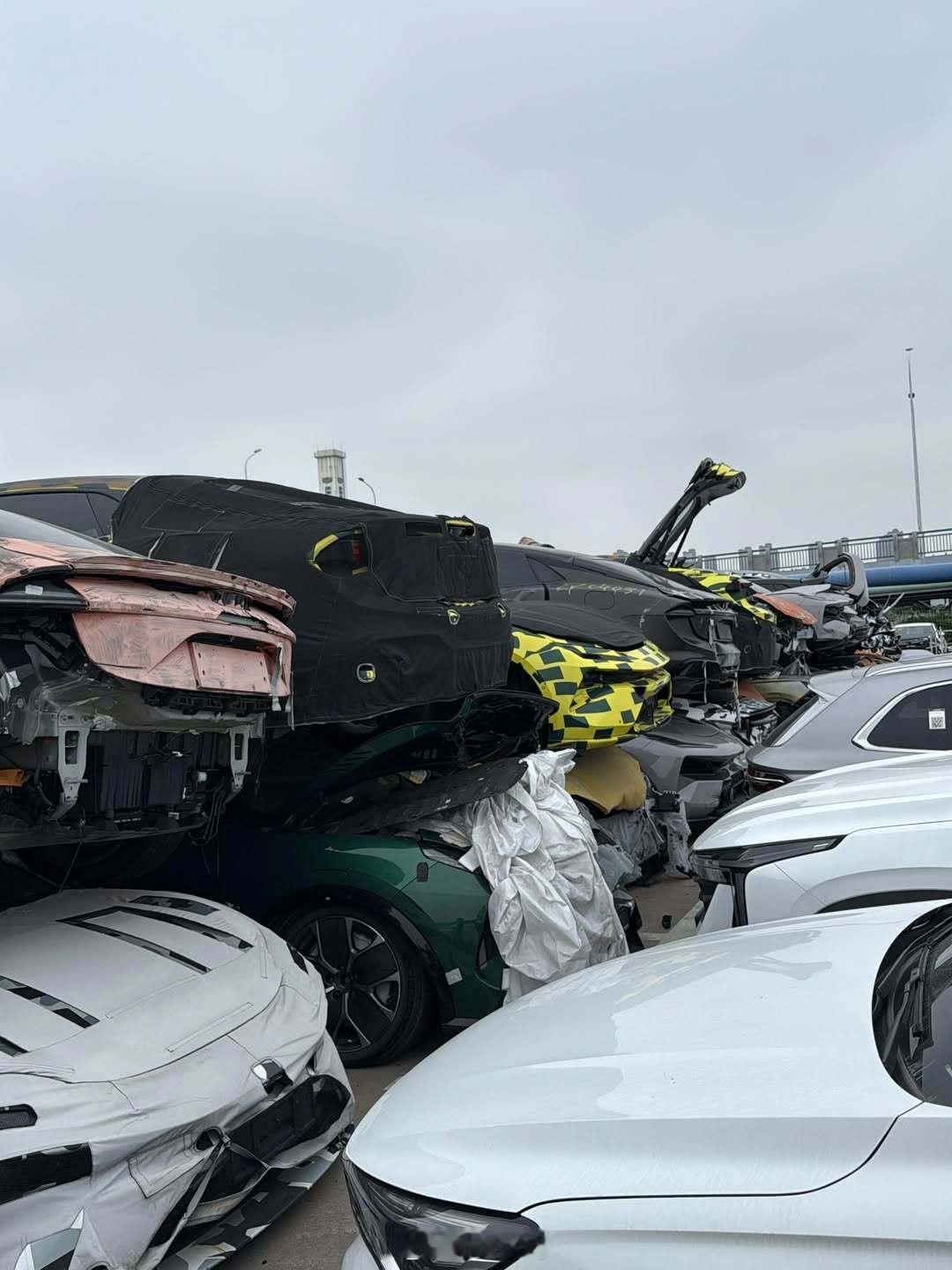 这么多莲花的测试车报废了堆在露天,真是太可惜了。emeya繁花eletre新能源汽车