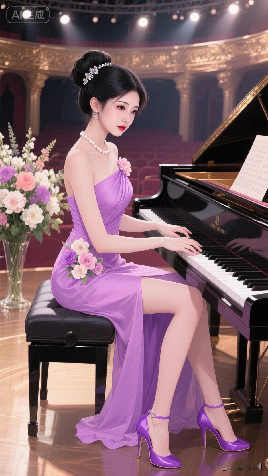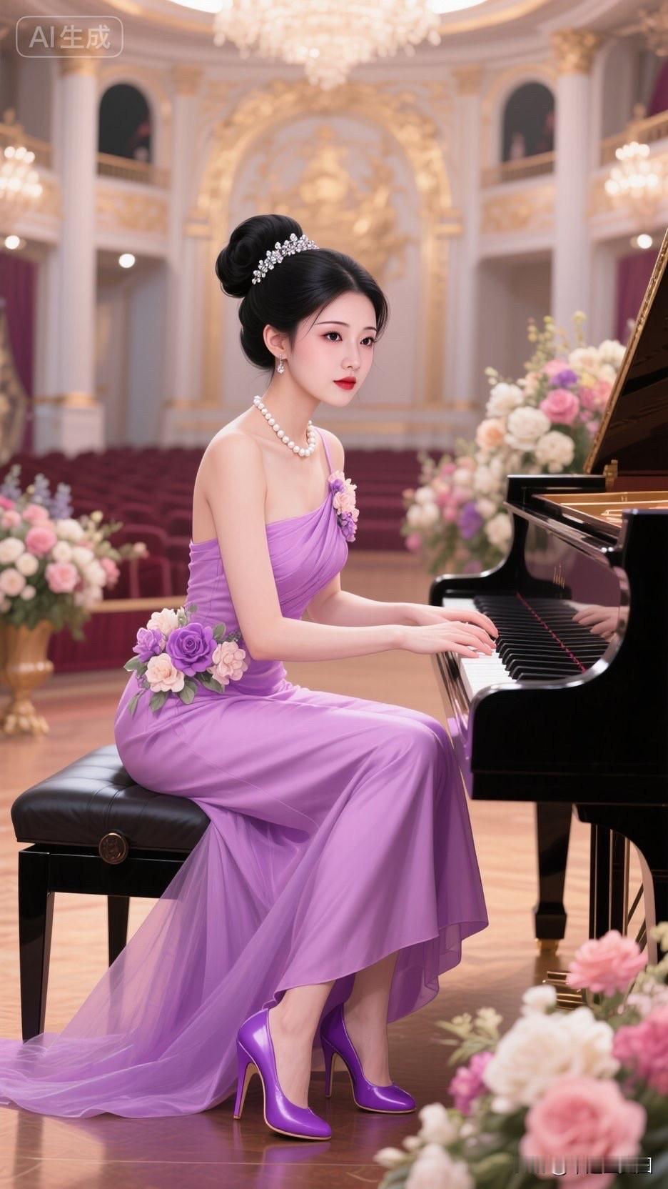 优雅钢琴演奏,紫色礼服与音乐共舞