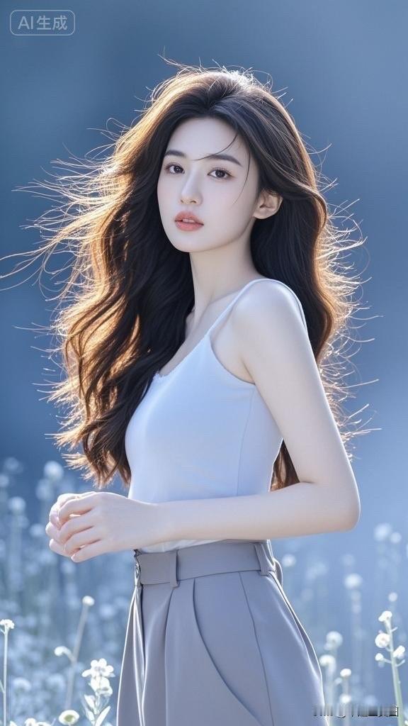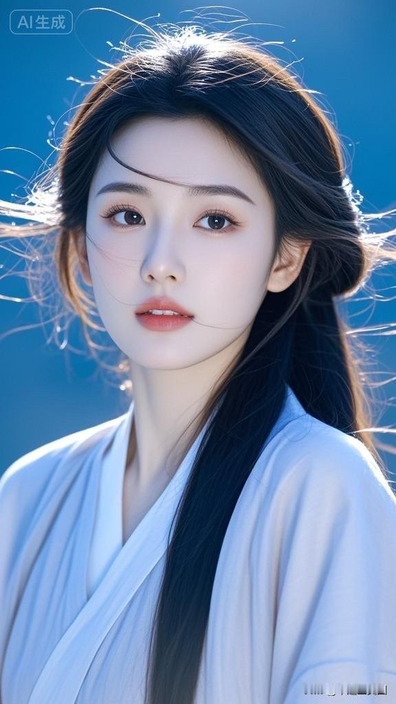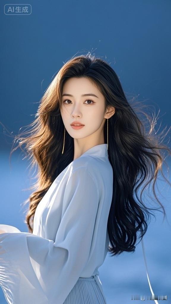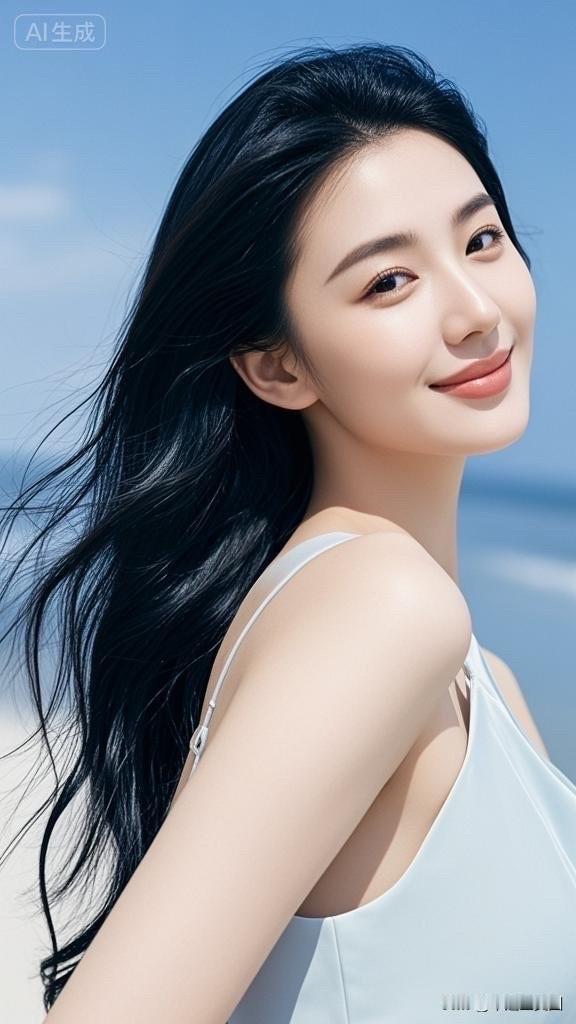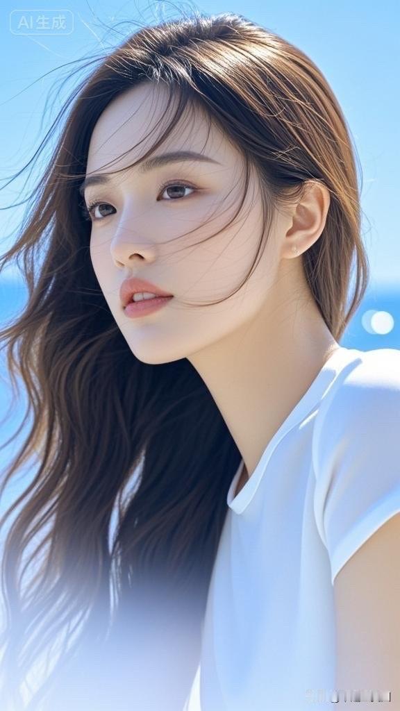 阳光下的温柔少女,海风轻拂发梢,宛如画中仙子。