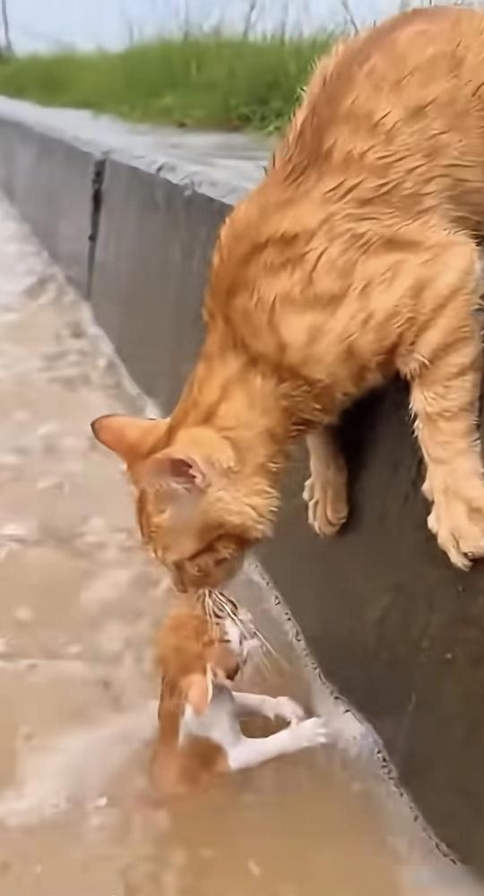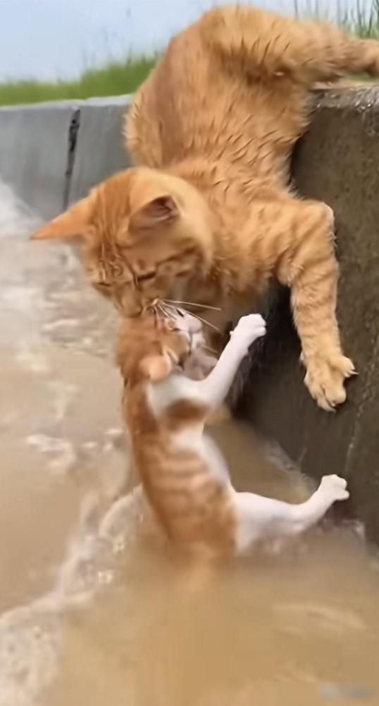 泪目了!动物之间也有互相帮助的优良传统,实在令人感动。 那天是一只猫妈妈带着两只小奶猫在小河边玩,结果因为下过雨、地滑,两只小猫一起掉进了水里。 它第一时间扑过去救娃,只能先叼住离自己更近的那只,把劲儿全用上好不容易拖回岸边。 说个细节,另一只小奶猫被冲到河道中间,那种够不着的无力感,我光想都紧张。猫妈妈在岸边急得直叫,这画面真的挺揪心的。 然后更绝的是,一只路过的狗直接跳下去,把被冲走的小家伙叼了回来,放得还特别轻。 我觉得最打动人的不是“跨物种救援”这种标题感,而是当下那个毫不犹豫的动作,像是本能一样。 也可能是因为我们平时见过太多动物之间互相打闹的画面,所以这种互帮互救反而格外能戳到人。 还有个感受:情绪这种东西真的会传染,猫妈妈那种急到发声的样子,估计狗狗也听懂了紧迫感。 看到最后团圆的那一刻,我反倒意识到,人类有时候也需要这种“不计较、先伸手”的冲动,大概世界会温柔不少。