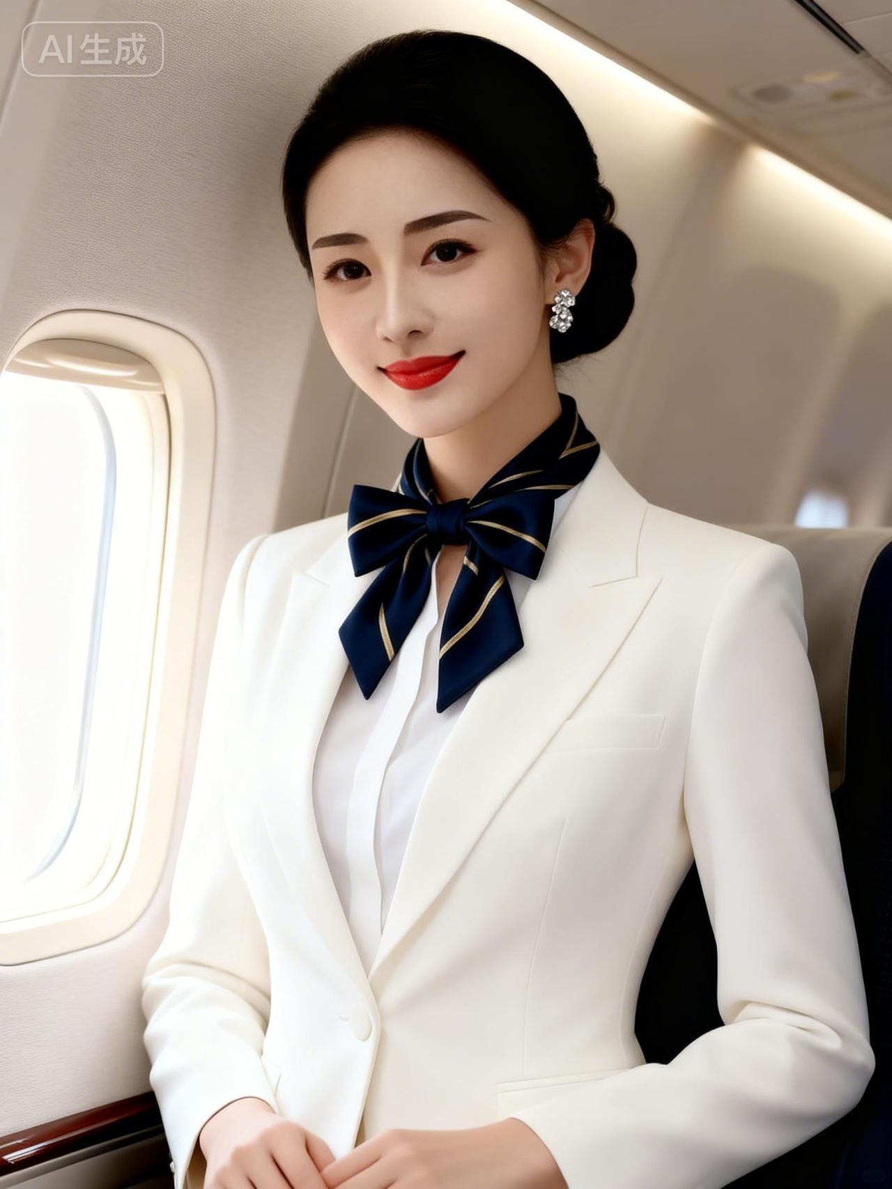 优雅空姐,微笑服务,飞行中的美好瞬间。
