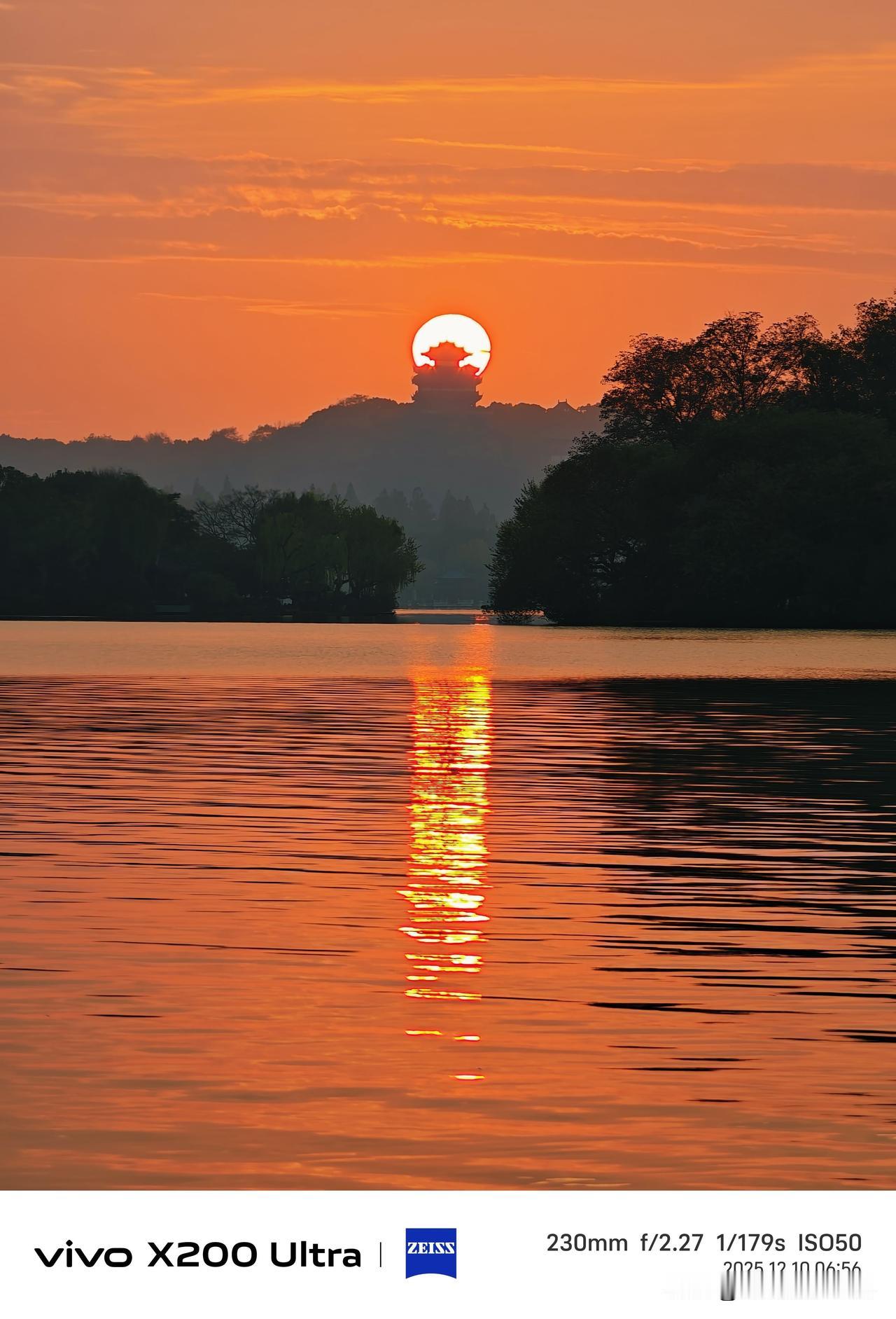 太棒啦!12月10日,西湖的日出,城隍阁的悬日,还有一些朝霞相伴!真的太美啦!只是,说真话,大多数游客,好像都在吐槽杭州西湖,大多数去过西湖的人,好像对于西湖的评价不咋滴啊! 可是,12月1日至今,凌晨5点半就起床去西湖边看日出、看晨雾……又有几个人呢?!每天早上,专门去看日出晨雾的游客,也许只有100个人左右…… 即便是日落……大家可以数一数涌金门日落的人头,数一数集贤亭日落的人头……顶多几百人吧?! 所以……杭州西湖的美……大多数游客……都是没有见过的! 好吧,现如今,手机摄影,只要看到的美景基本都可以如实记录还原! 千万不要说自己没有专业的单反相机微单相机和大炮镜头,所以……就不去看西湖的日出日落啦! 摄影畅销书作家曾兰老师,光线摄影学院曾兰老师,网易云课堂金牌摄影讲师曾兰老师,北京大学出版社签约作者曾兰老师,清华大学出版社签约作者曾兰老师,今日头条大V曾兰老师……最近在杭州,经常凌晨5点半起床……西湖日出,苏堤日出,断桥日出,花港观鱼晨雾,太子湾晨雾,九溪晨雾……真的值得凌晨5点半就起床呀!
