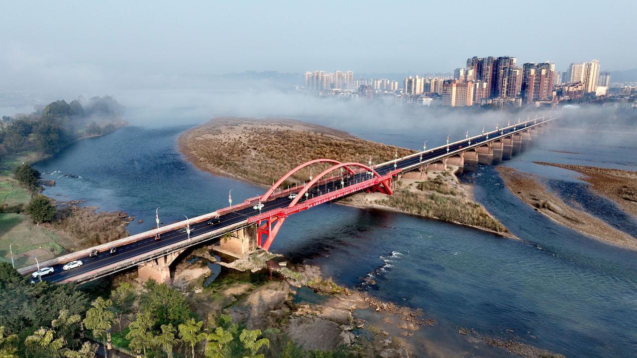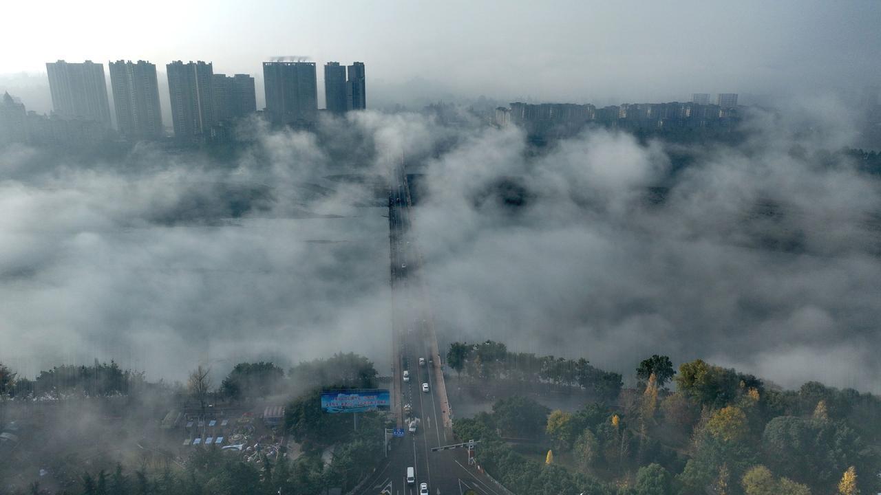 🌿从空中俯瞰洪雅,云雾缭绕的山谷像流动的绸缎,梯田层层叠叠,在阳光下泛着微光。