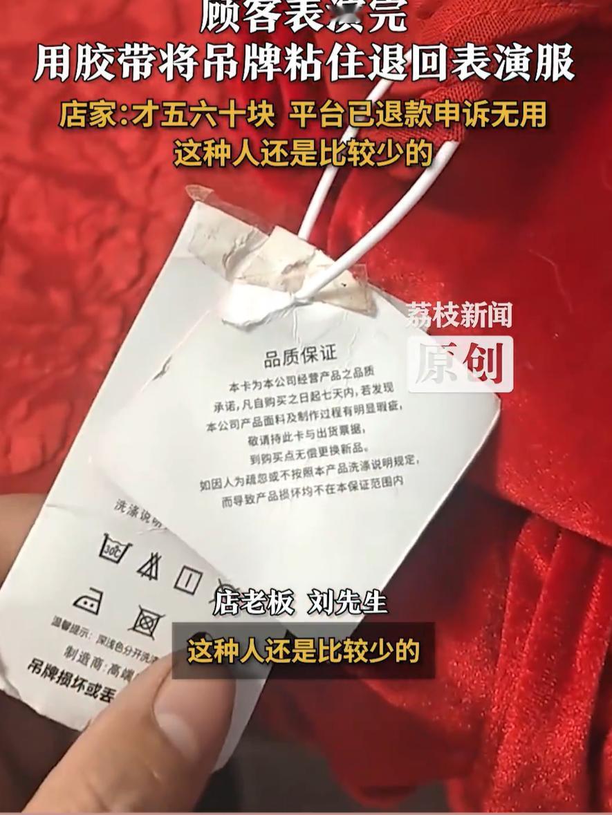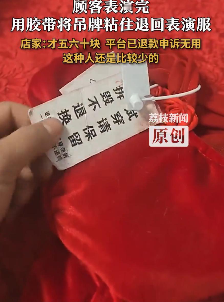 “你这是在侮辱我的智商!”山东菏泽,一位网店老板收到客户发回来的退货,结果打开包裹后发现,衣服已经被穿脏了,而且吊牌还是用胶带重新粘住的,一件十几块的衣服,直接把老板都给气笑了 老板刘先生介绍,这是一件表演服,也就是五六十块钱,因为怕这种情况出现,特意在吊牌上面写着“试穿请保留,拆毁不退换”。可即便如此,还是没挡住一些“有心人”,对方收到衣服后直接把吊牌剪下去表演 要说对方不细心呢,她还知道把吊牌重新粘上,但要说对方细心,又粘的太粗糙,让人一眼就能看出来,这也是让刘先生哭笑不得 更让刘先生无奈的是,平台已经提前给顾客退款了,现在申诉也没什么用。他只能把这件事发到网上,吐槽一下 说实话,看着这种事是真的无语,退货本来是一个很简单的事。衣服不合适,不喜欢,或者确实质量有问题,退就退了,谁都能理解。表演服这种东西比较特殊,用过的确实没法再次上架,也不能当新品卖。穿了再退,等于把损失直接甩给商家。大家都在说互相体谅,但体谅往往是靠自觉,而不是靠平台提醒 而对平台来说,现行的“闪电退款”政策虽然提升了购物体验,但也在一定程度上被少数人钻了空子。有些顾客利用平台信任,先拿到退款再退货,甚至退个空包裹回去 我觉得,平台的规则再细,也替代不了买家的自觉。买卖关系说白了就是一句话,各自把各自的那点小心思收一收。穿了再退,表面上占了便宜,实际上给别人添了麻烦,也给市场添了乱。如果靠这种方式节省几十块,那其实一点都不划算