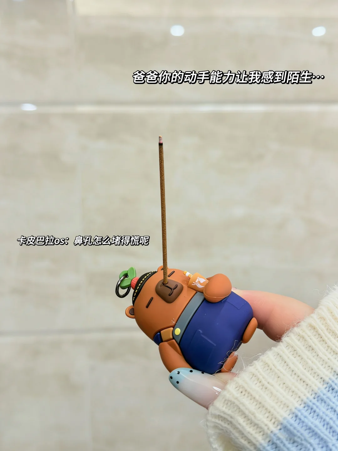 因为我妈平时就爱在家闻香,于是晚上我爸就把挂件爆改成线香托了,完美适配我妈买的线香。