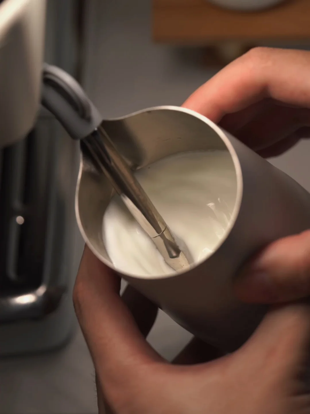 ❶萃取浓缩咖啡,打发奶泡后融合拉花