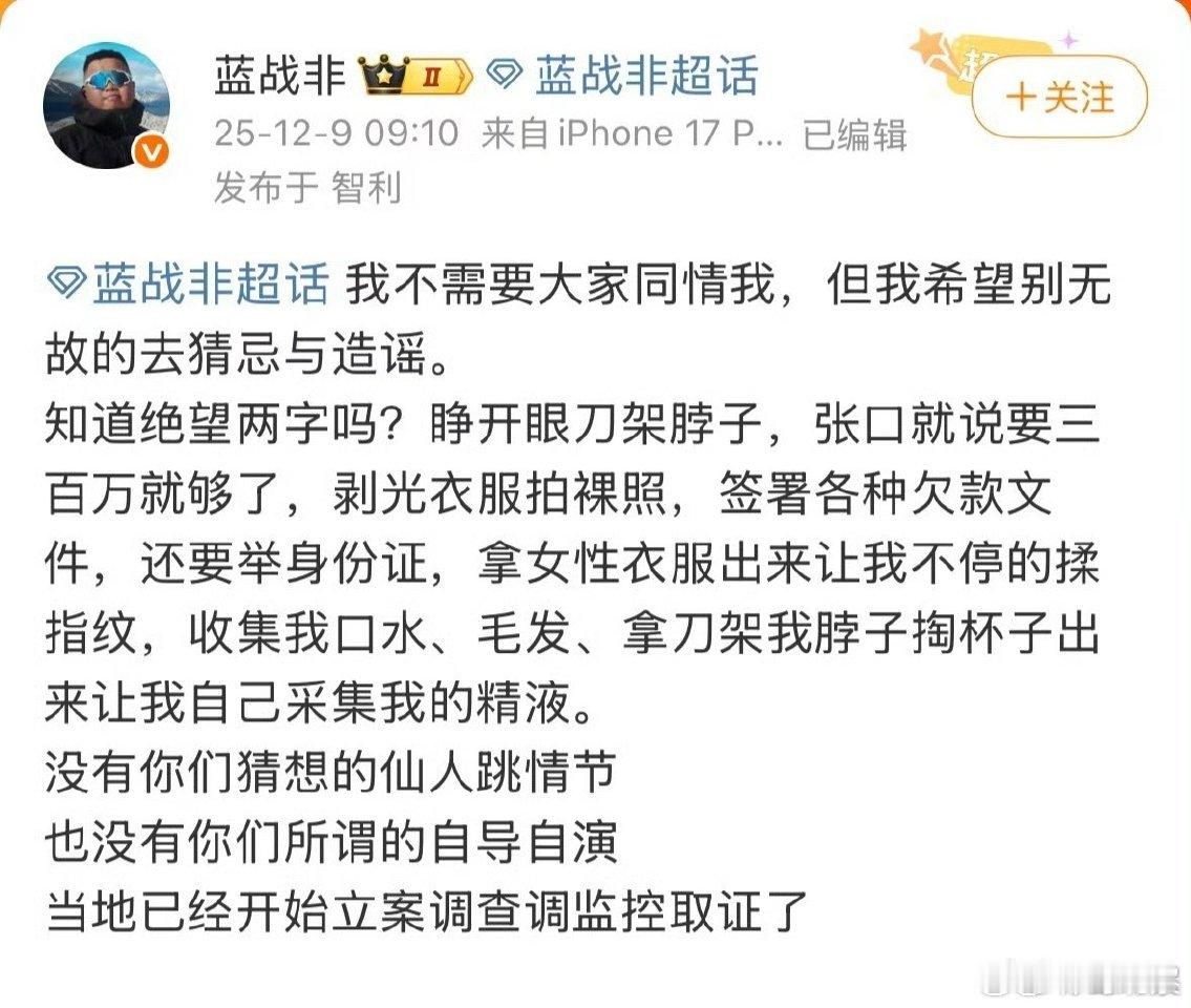 不明白绑匪布局半年、买通酒店内鬼、凌晨持刀入室,只搞到108万?够成本么?蓝战非称被绑架蓝战非称被强迫拍裸照蓝战非 生物证据